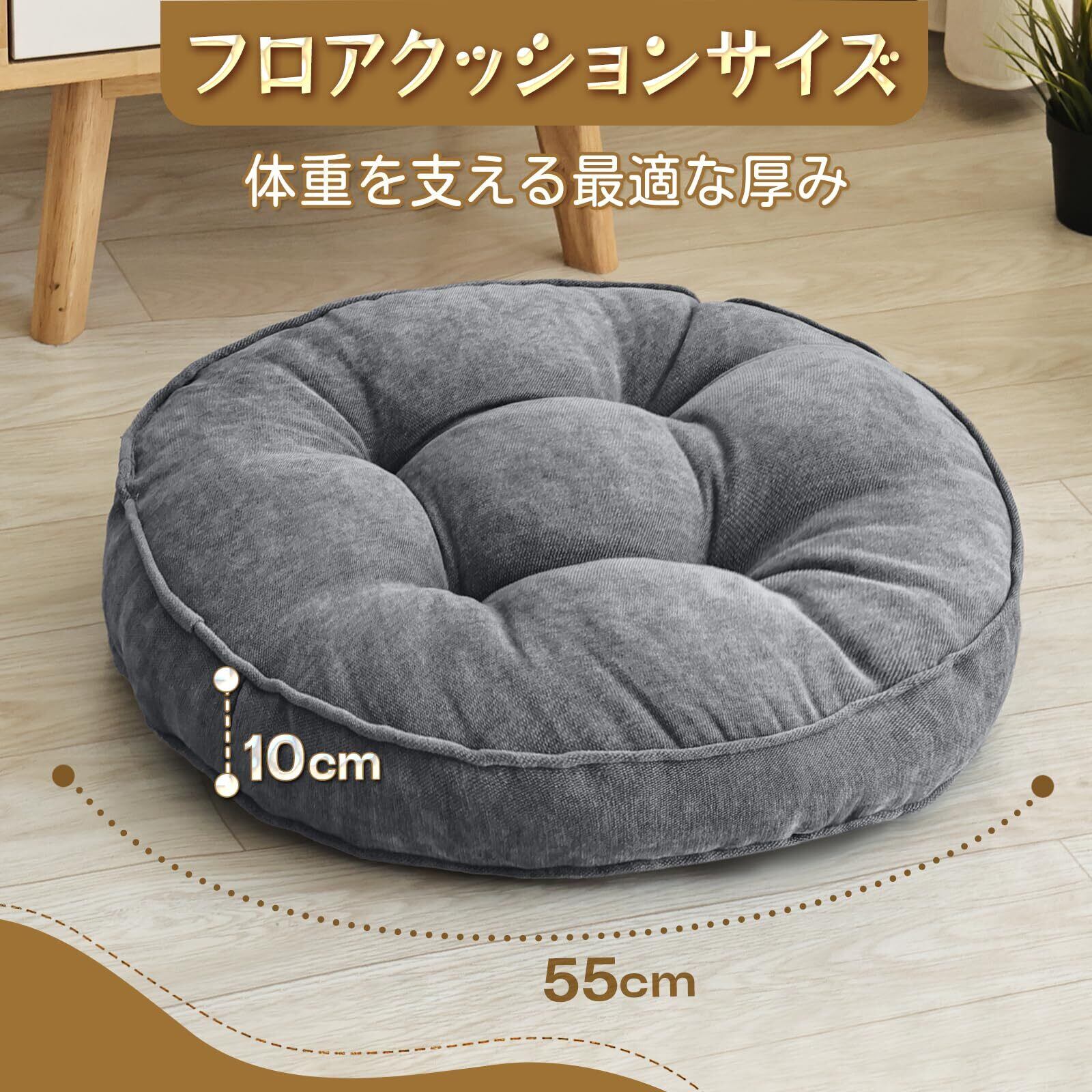 Awesling座布団 55cm おしゃれ フロアクッション 「1個入り」大きい 裁断メモリーフォーム入り 北欧 かわいいざぶとん 大きめ 体圧分散 座り心地いいクッション 読書 座禅 ・ソファ・ベッド・車載・椅子兼用 洗える (1, グレー, 円形55cm)