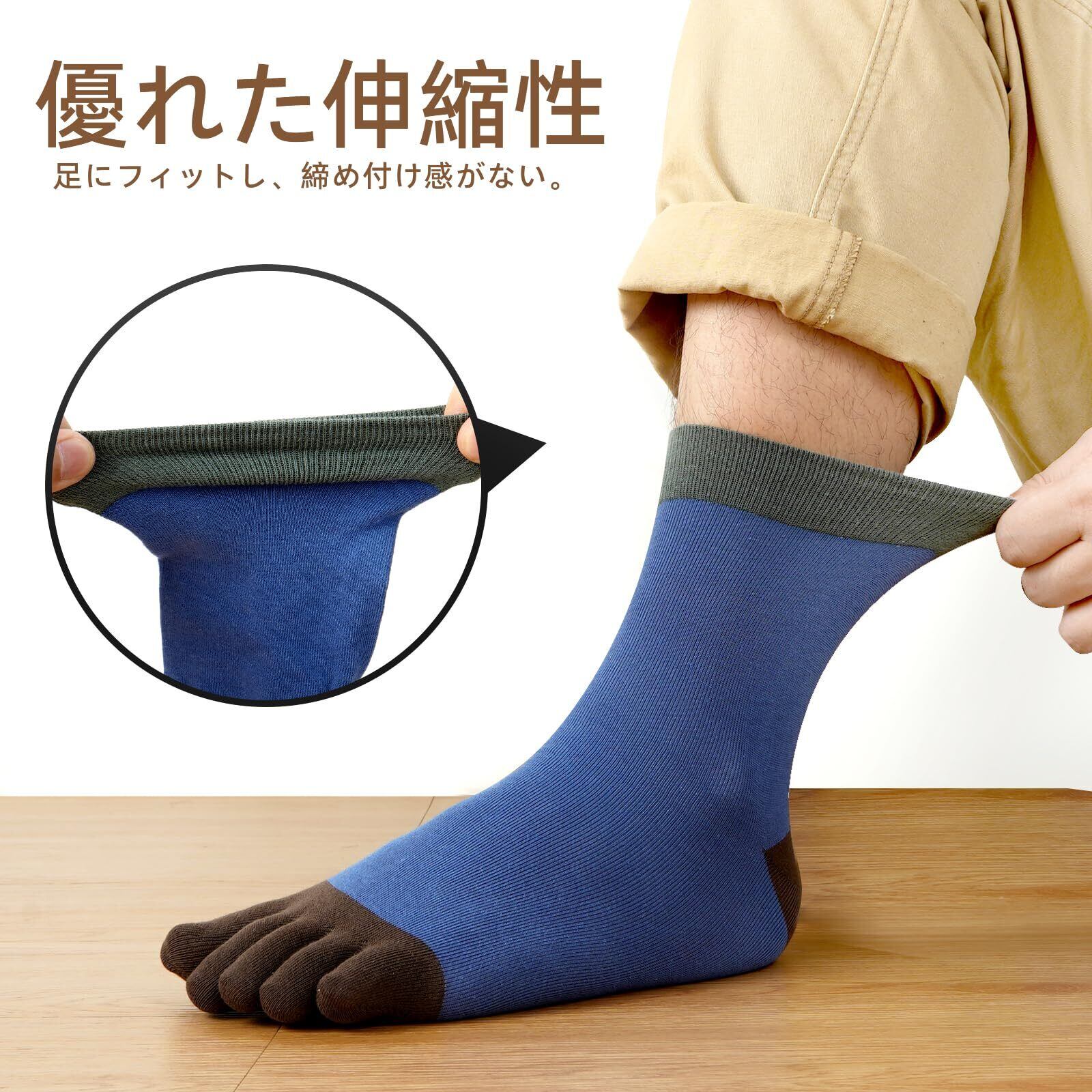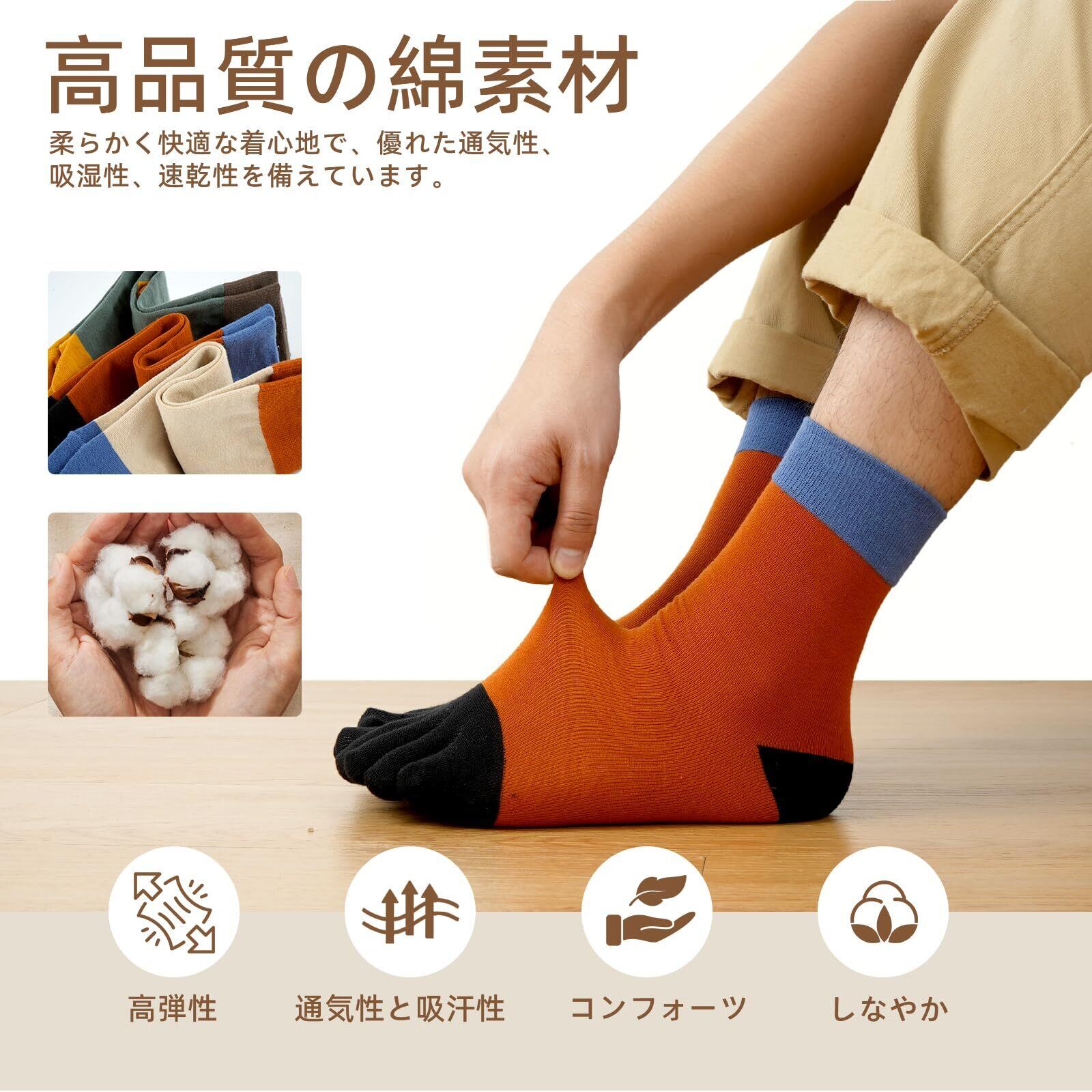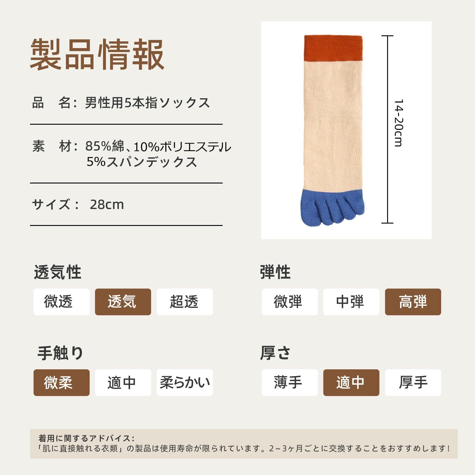 【5本指ソックス メンズ クルー靴下説明】素材: 綿85%+ポリエステル10%+5%スパンデックス。サイズ:24-28cm(優れた伸縮性は28cmまで延伸可能です。フリーサイズで大部分の日本男性の足に適用大きめ靴下です)。対象:男性用。パーケージ:5足セット。機能:5本の指部分がそれぞれ独立する分指ソックス。季節:春夏秋冬。夏用は蒸れな春秋冬用は保温防寒中厚手五本指ソックス。丈:クルー丈。サラサラして柔らかい快適な履き心地、伸縮性のある生地が圧迫感を抑えてくれるので、一日中履いても疲れにくいです。
