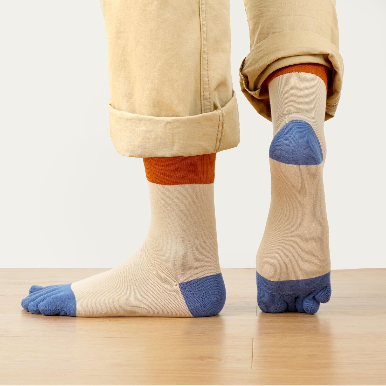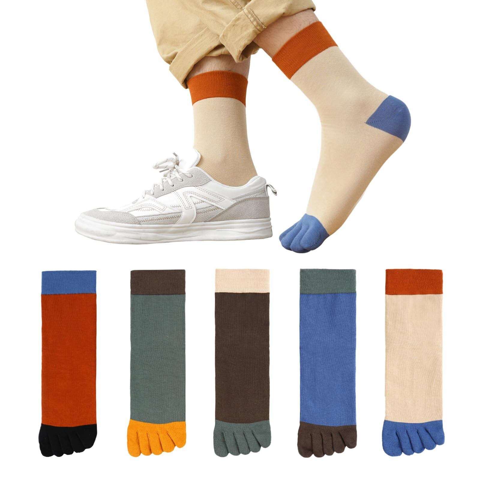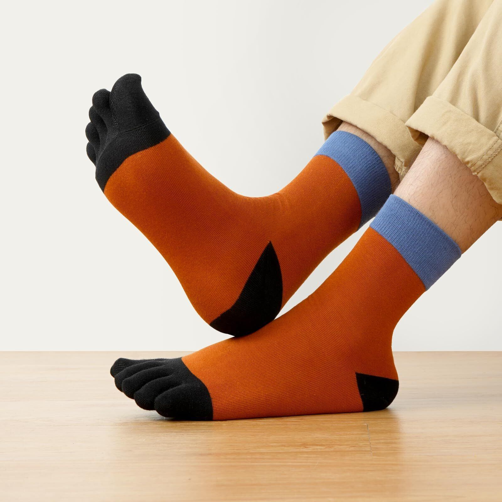 【5本指ソックス メンズ クルー靴下説明】素材: 綿85%+ポリエステル10%+5%スパンデックス。サイズ:24-28cm(優れた伸縮性は28cmまで延伸可能です。フリーサイズで大部分の日本男性の足に適用大きめ靴下です)。対象:男性用。パーケージ:5足セット。機能:5本の指部分がそれぞれ独立する分指ソックス。季節:春夏秋冬。夏用は蒸れな春秋冬用は保温防寒中厚手五本指ソックス。丈:クルー丈。サラサラして柔らかい快適な履き心地、伸縮性のある生地が圧迫感を抑えてくれるので、一日中履いても疲れにくいです。