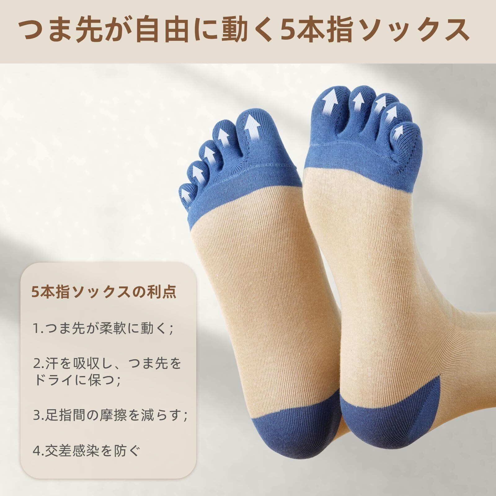 【高い伸縮性・丈夫な指付き靴下】85%コーム綿は原料を精製した高品質な綿で、指の縫い目も丈夫で破れにくく、耐摩擦性が高く、シワや毛羽立ちが少なく、色落ちしない。5%スパンデックスを含んで伸縮性が良く、ゆったりで締め付け感がない。5本指靴下が足指を解放したため、地面をしっかり捉えて余計な力が入らず颯爽と歩けられる。また5本の指部分がそれぞれ独立しており、摩擦を軽減できます、長時間歩いても快適な履き心地!学生やサラリーマンの毎日の通勤通学、長距離の旅行に重宝します!