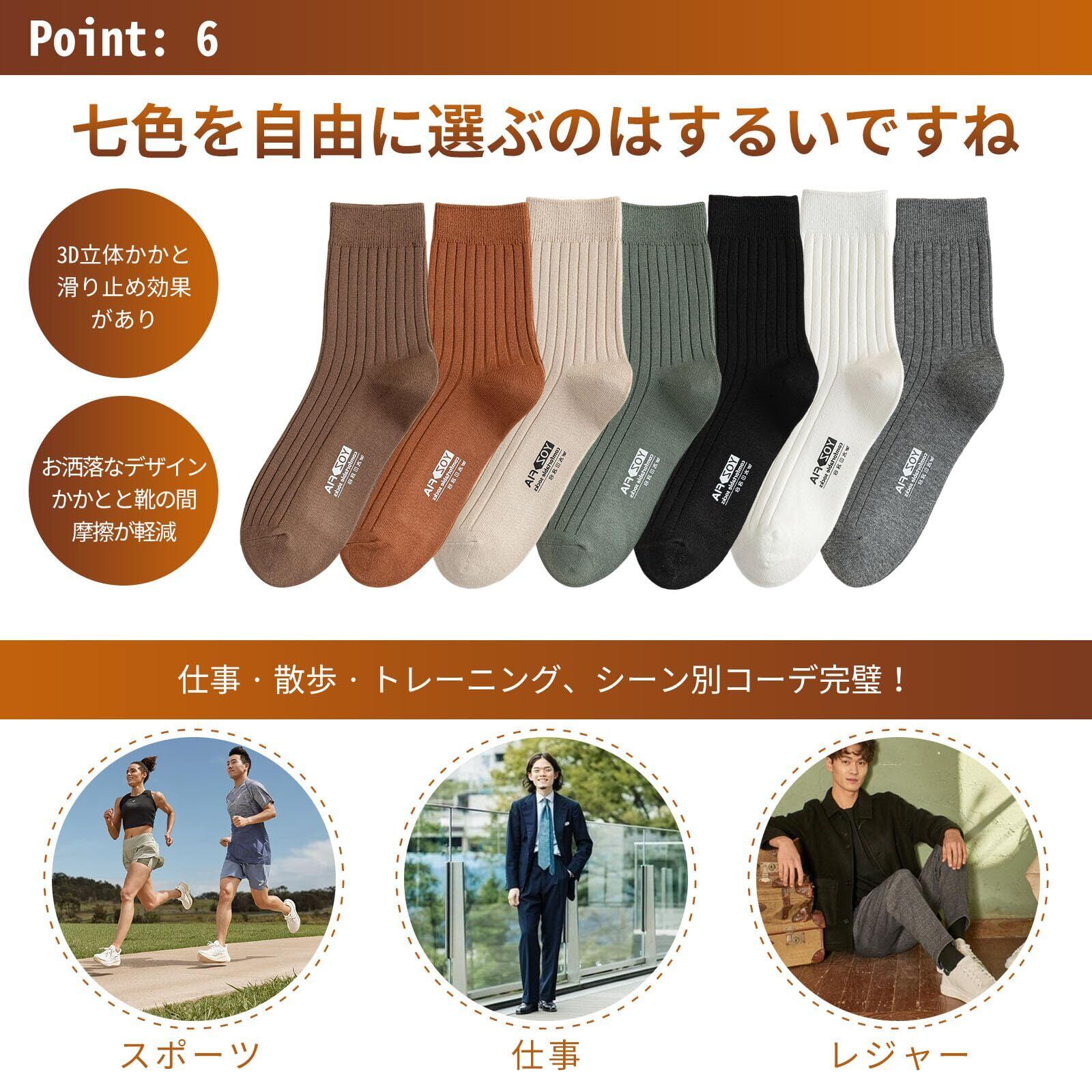 【滑り止め&お洒落なデザイン】抗菌消臭靴下は足の甲/土踏まず部分にリブ加工を施して凸凹をつけることで、滑り止め機能を発揮します。5/7足すべて異なるデザイン・カラーバリエーションのため日替りで履いて飽きないのも魅力です ,丁度良い厚さと長さでビジネス(スーツ)からカジュアル(日常着)運動までどんなシーンにも最適なくつ下です,靴を脱いだ時にもさりげない好感を演出 。