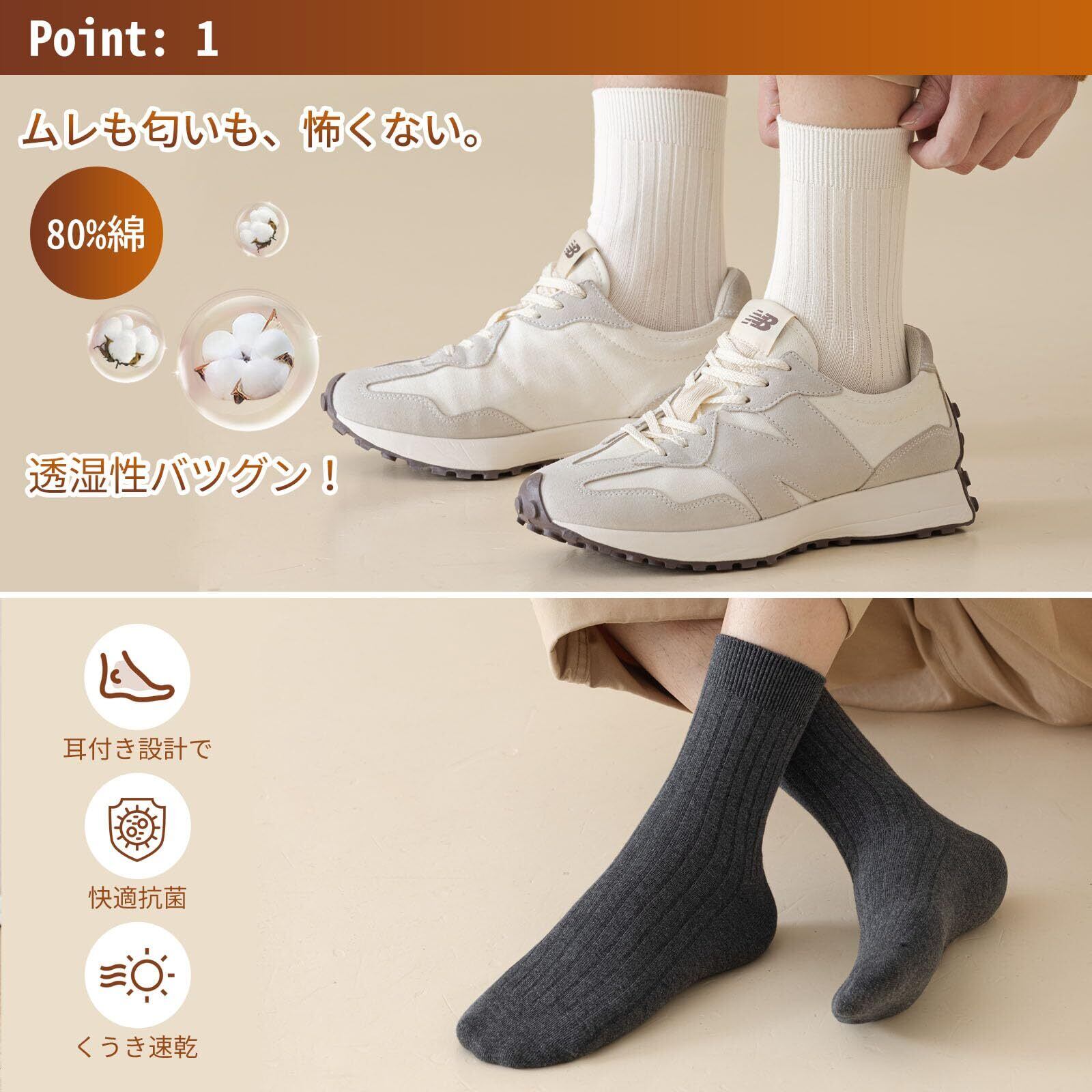 【 抗菌 防臭・吸汗速乾】良質なコットンを使用し、足指の不快な湿気を吸って外へ放出させるので、肌にサラサラ、心地よさをいつでも保ちます。それにより、メンズ靴下は抗菌消臭効果を発揮し、細菌の繁殖やニオイの発生を抑制できます。気になる足のムレを解消し、嫌なニオイから解放し。
