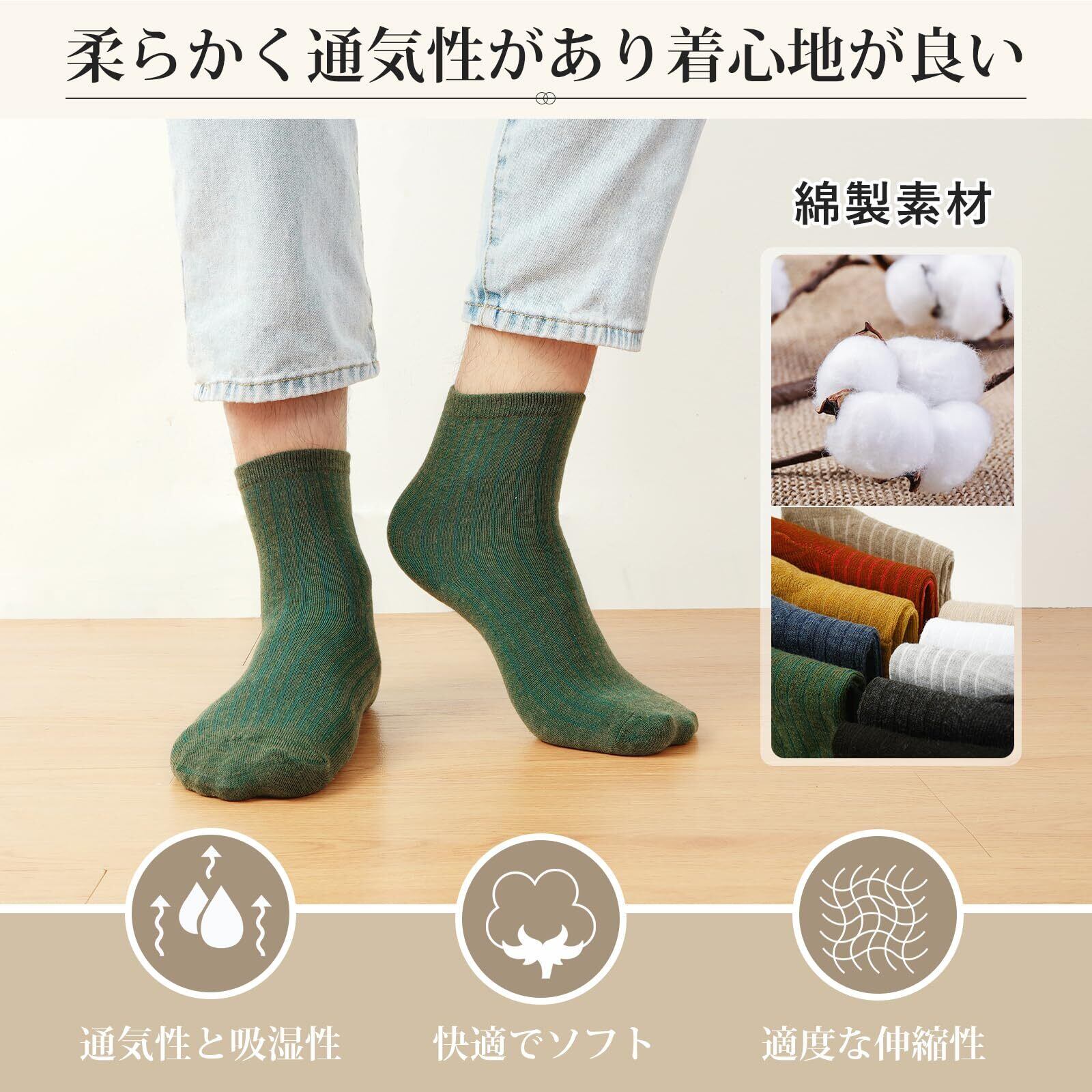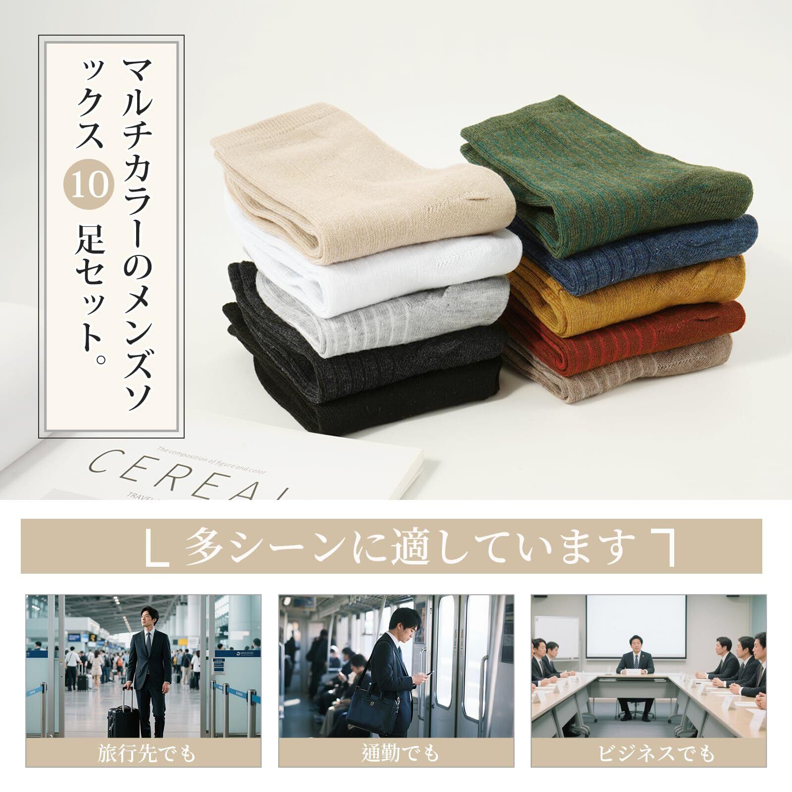 [Yazon] 靴下 メンズ 春夏秋 カラフルソックス 綿10足セット スポーツ 夏用通気吸汗 男性 ビジネス クルーソックス おしゃれ人気 旅行 出張 使い捨て靴下 丈夫 24-27cm四季用くつした