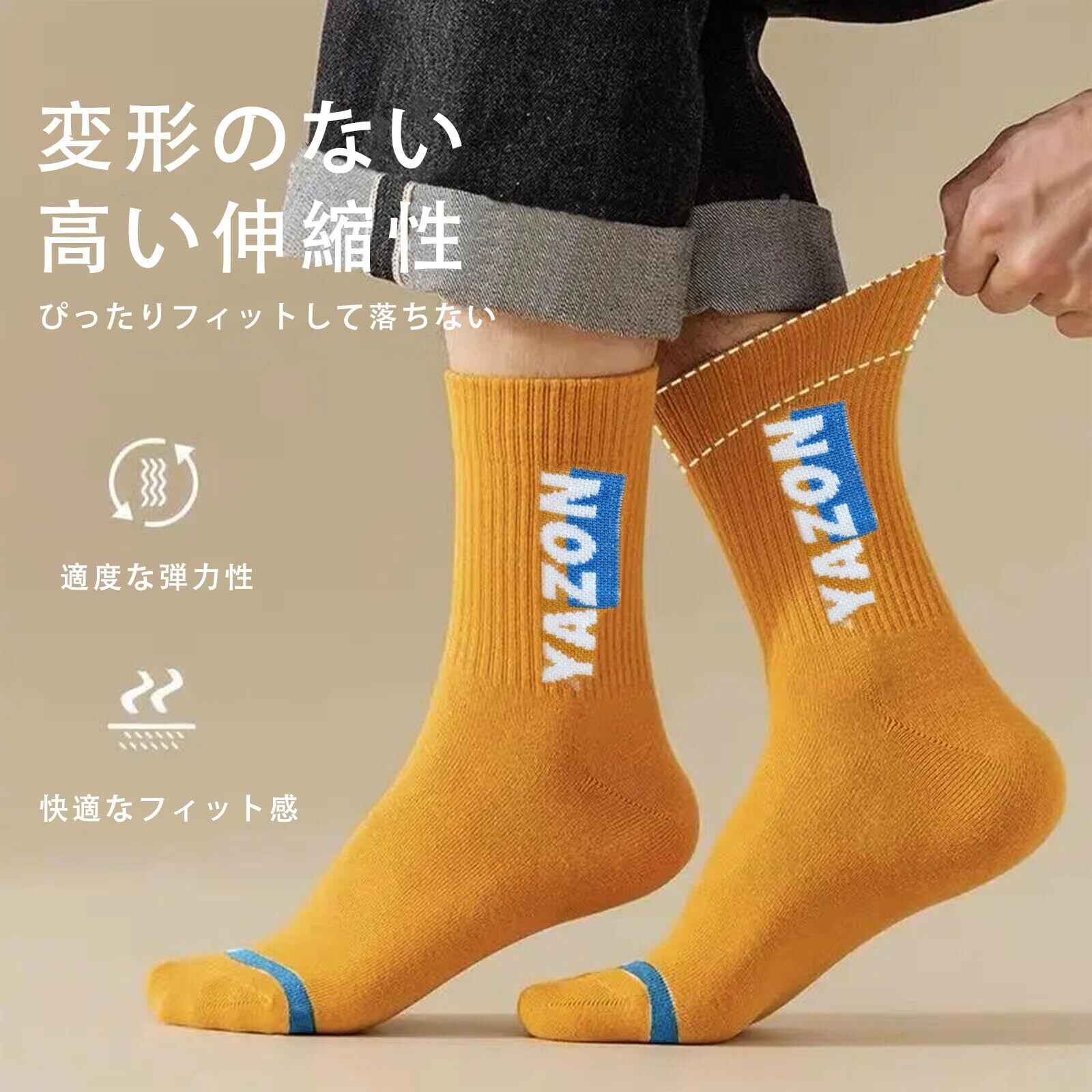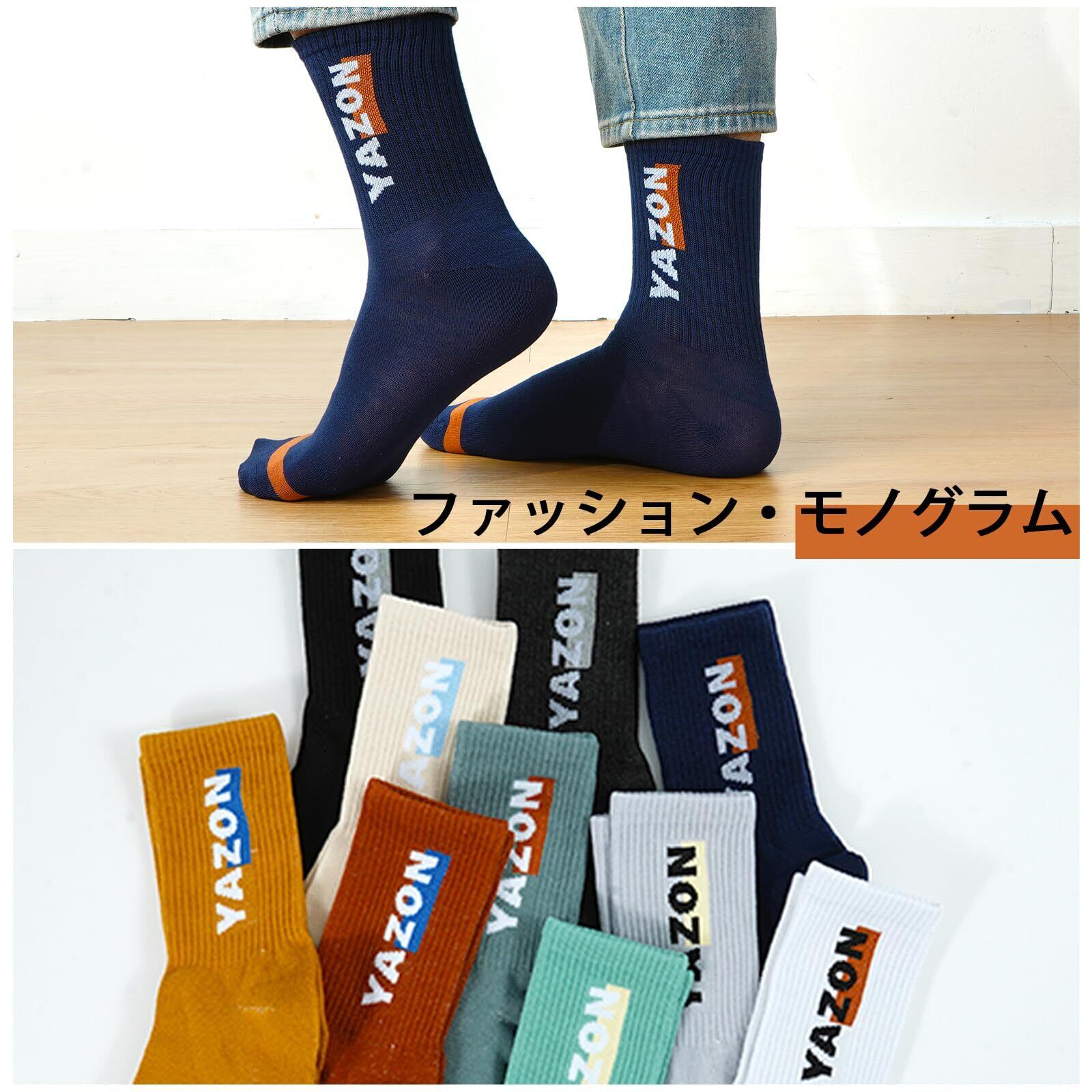 【yazon靴下 メンズ商品説明】メンズ用のコスパ良い10足セットのカラフルソックス。素材:80%綿+ボリエステル+スパンデックス。サイズ:25-27cm。優れた伸縮性は29cmまで延伸可能です。フリーサイズで大部分の日本男性の足に適用大きめ靴下です。厚さ:厚手と薄手の中間厚さ。季節対応:四季。春秋の着用に最適が、夏は蒸れにくい、冬に冷えない靴下。パーケージ内容:10色10足セット。デザイン:yazon英字プリントストライプリブ柄ツートンカラーソックス。コスパで、毎日違う色を楽しめる、「足元のオシャレ革命」な靴下セットです!