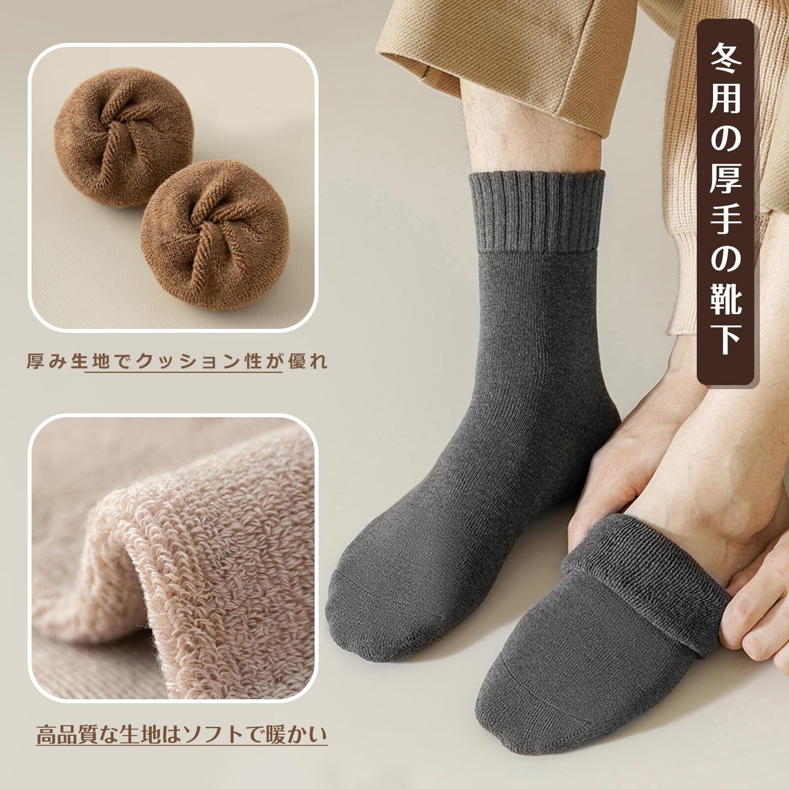【冬に向き暖かい靴下メンズ】適度な丈高と裏地はパイル素材で熱を逃がしません、不思議な防寒保温性能を実現しながら、肌触りも柔らかく、履き心地抜群なメンズソックスです。厚み生地で保温性をもっとアップします!秋冬場で電車や室外にいる時でも風が入りにくく、足元を暖かく保温できるおしゃれくつした メンズ 冬。