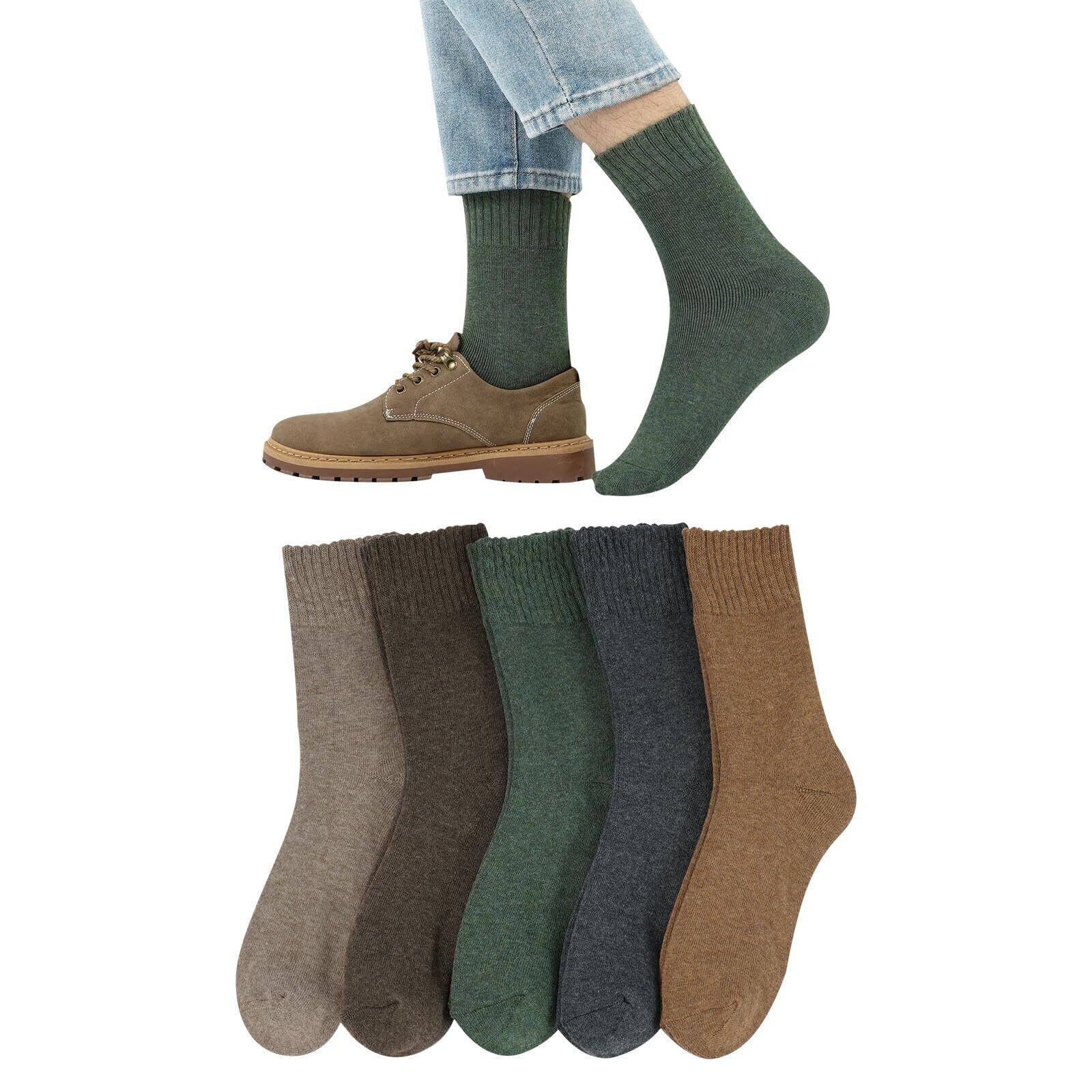 [DAMILY] 靴下 メンズ 冬用 厚手ソックス 暖かい くつした メンズ クルーソックス 綿 カジュアル 男性 あったか靴下 5足セット 秋冬 スポーツソックス 保温性 室内 くつ下 登山 23-27cm 吸汗 防臭