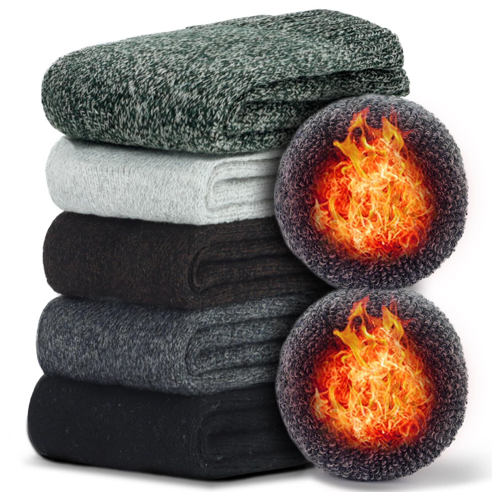 [HORADON] 靴下 メンズ 冬 防寒 厚手 ソックス 【極厚裏パイル・暖かさが爆発してる・ふわふわの雲のような感触】保温 防寒 吸汗 抗菌消臭 伸縮性 耐久性 25-28㎝ 男女兼用 5足セット