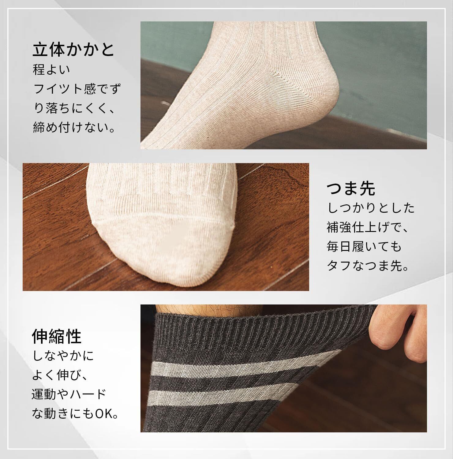 【 防臭・吸汗速乾】 速乾性とに優れたコットン素材でソフトながらしっかりとした着用感を体感出来ます。汗をかきやすい足から水分を素早く吸収し、外部に放出することで、ランナーの足をより快適でドライな状態に保ってくれます。夏用は蒸れにくい、春秋冬は防寒効果もあり暖かい靴下 メンズ 冬です、特別な季節感がなく、通用する特性は本当に便利なおしゃれ靴下メンズ ソックスです。