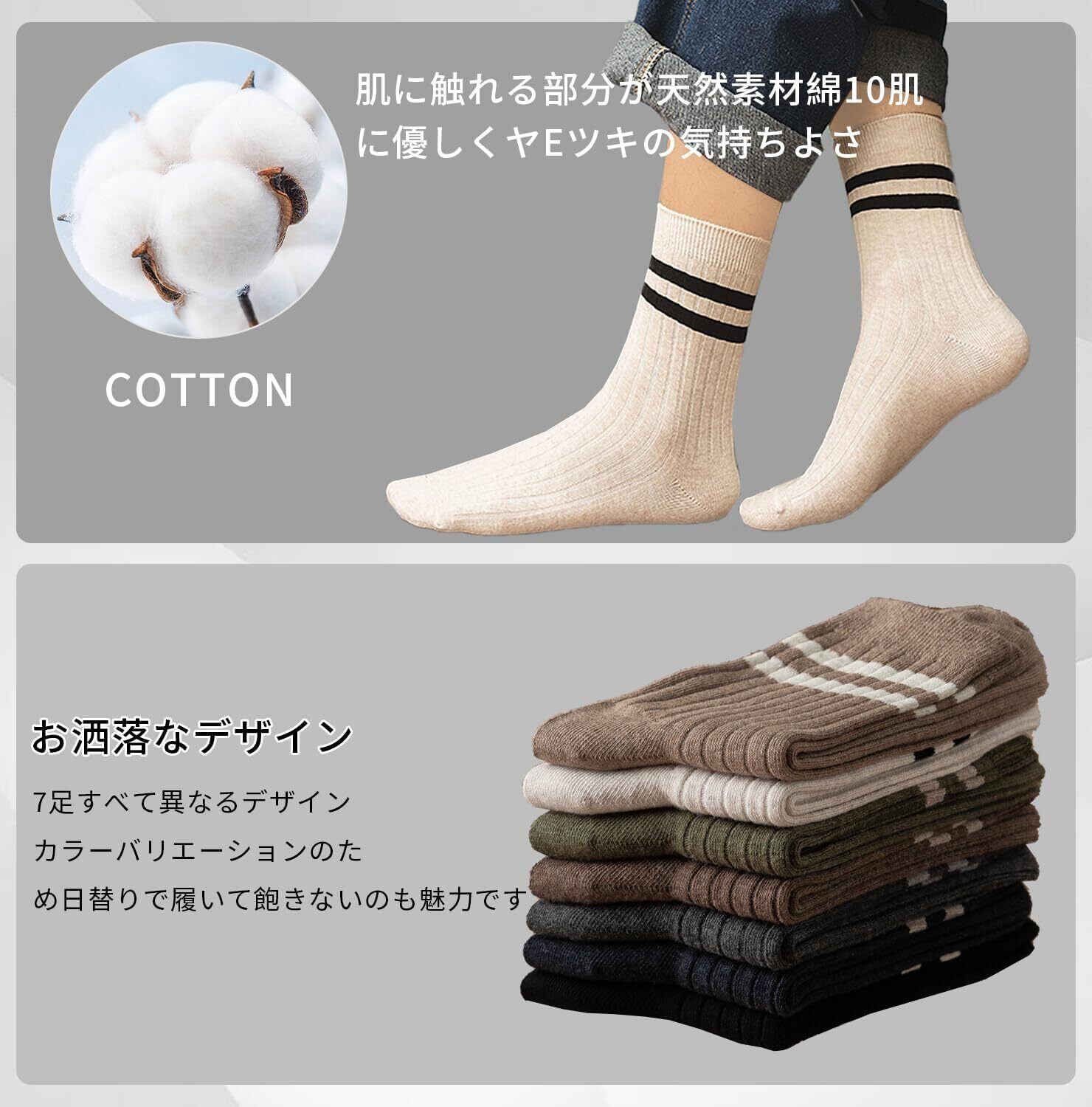 【極厚裏パイル】7足7色セット春冬秋に活躍。やわらかタッチで、肌触りが気持ちいい裏起毛素材なので、足元をやさしくつつみこみ、冷えからしっかり守ります。豊富な色とシンプルなデザインは流行を追う若者にも人気な春秋冬用おしゃれクルーソックス メンズ。