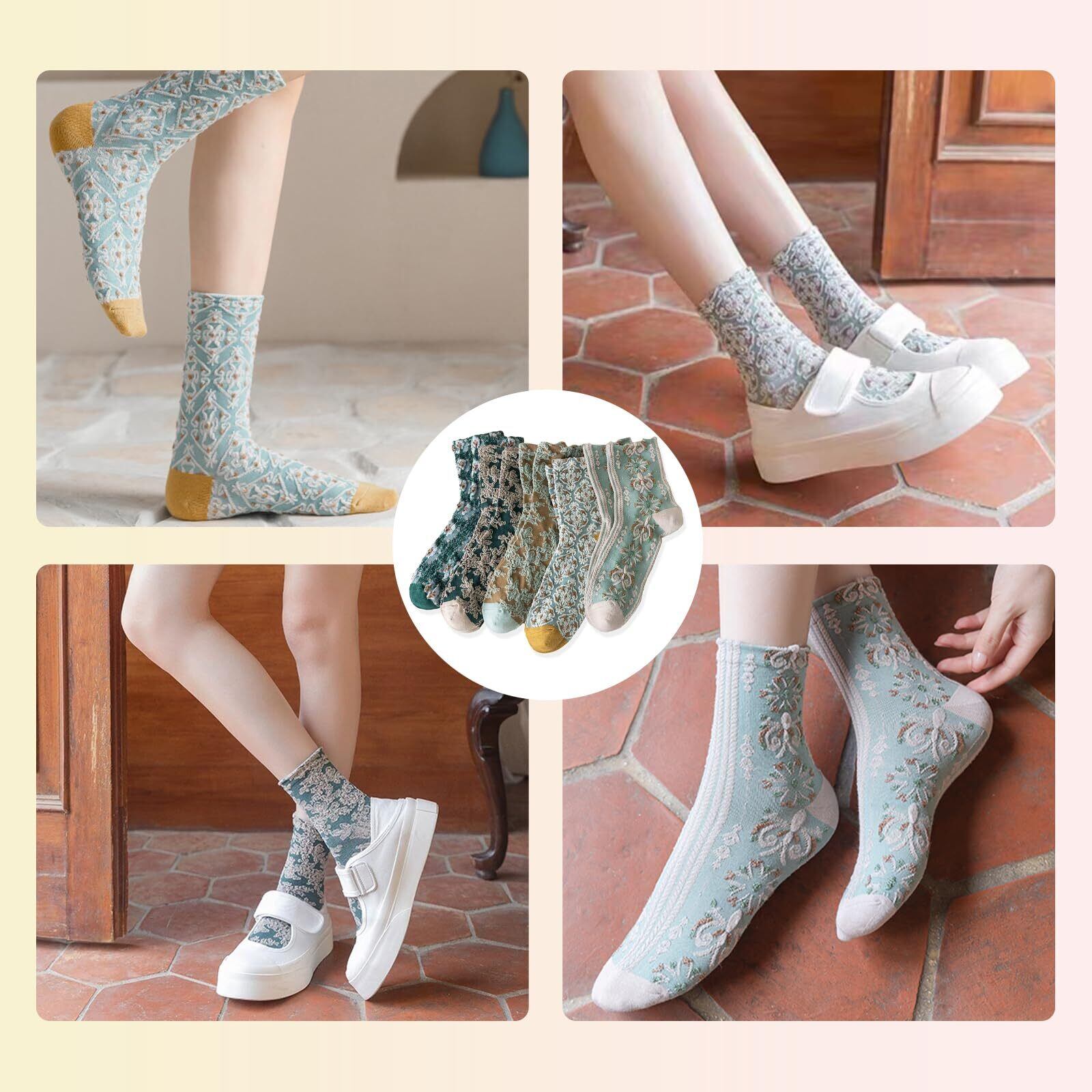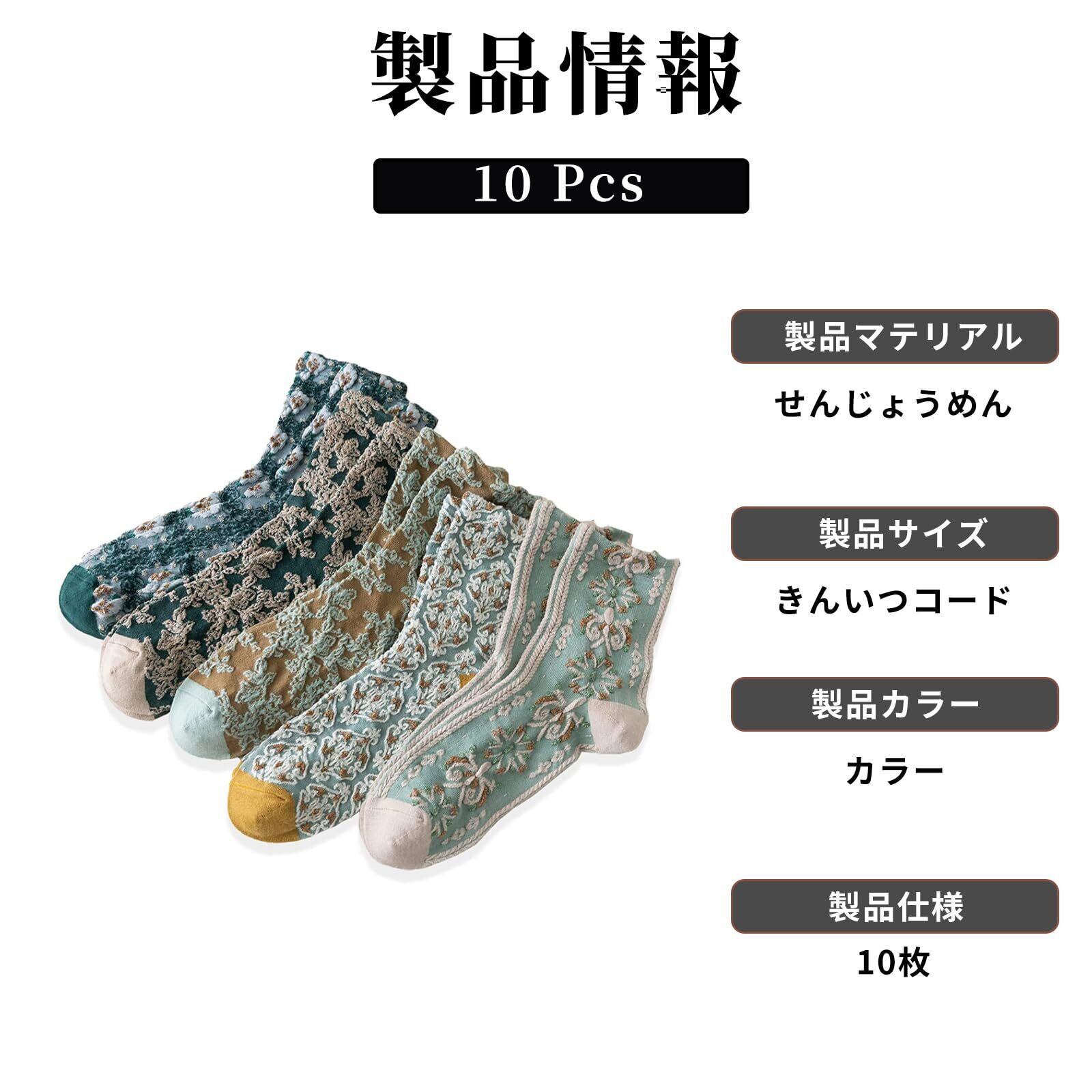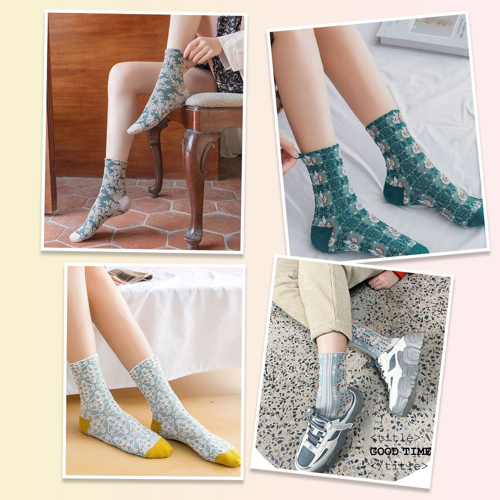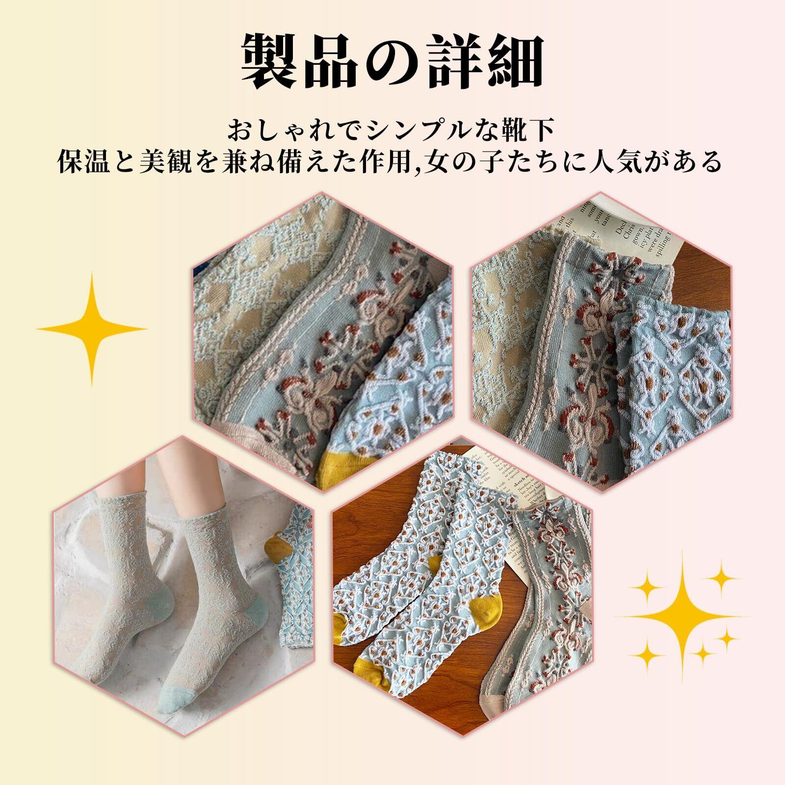 [ZHEJIA] 靴下 レディース 婦人用ソックス (5足セット) クルーソックス 人気 おしゃれ 花柄 刺繍 綿 防寒 通気 春 夏 秋 冬 女性用 くつした