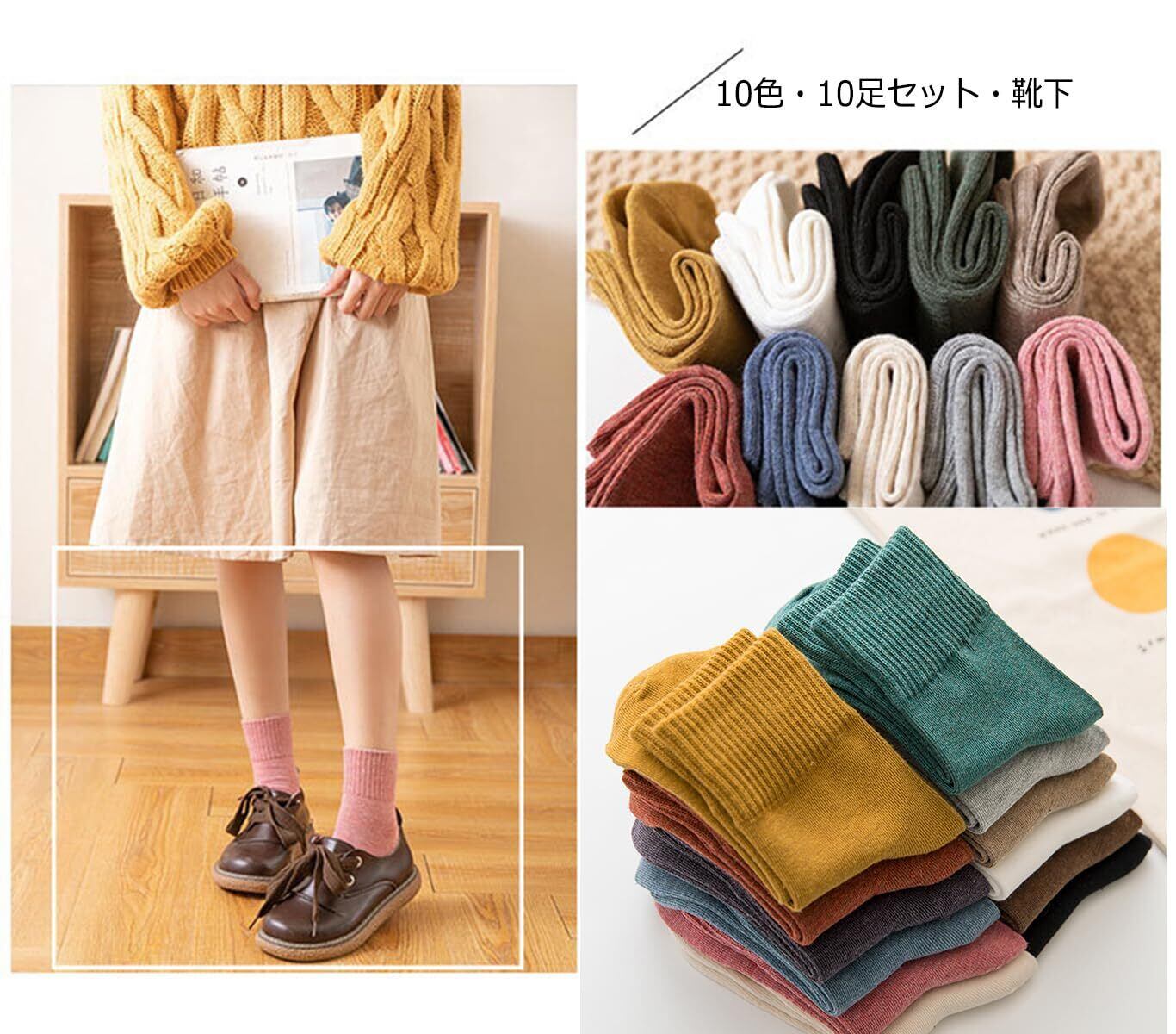 【カラフル10足セット靴下 レディース 可愛い】この靴下レディースは黒、白、薄いグレー、濃いグレー、ネイビー、ブルー、赤、黄色、ベージュ、コーヒー10色含んで豊富な10足セットくつした レディースです 、普段使いに出番が多いベーシックなカラーもあり、コーディネートのアクセントカラーになれるものもあって、春秋冬用通学・在宅・出張・旅行・レジャーなど様々なシーンで活躍できる女性用カジュアルソックスです。カラーバリエーション10組なので、洗い替えにも便利で、秋冬の日でも困らないクルーソックス レディース!日替り履いてオシャレを楽しめるのも魅力レディースセット靴下です。