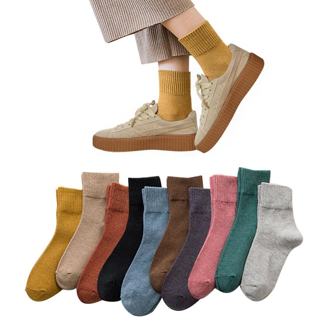 [Yazon] 靴下 レディース 綿 カラフルソックス/ 黒10セット おしゃれ女性用 くつした カジュアル コットンソックス 通気吸汗 スポーツ 室内 クルー丈靴下 中厚手 春夏秋冬用 通勤通学 婦人22-25cm(人気ギフト)