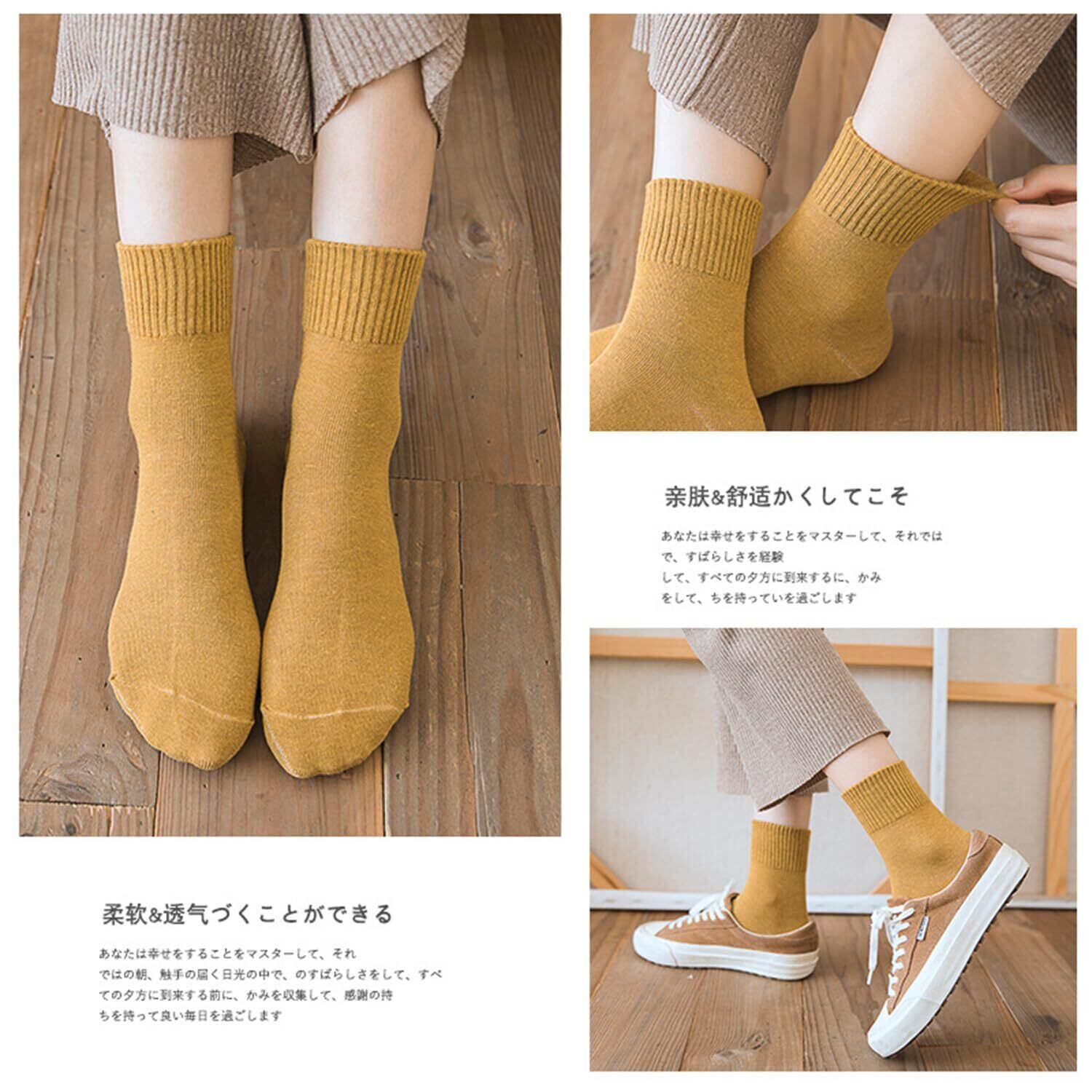 【中厚手柔らかい綿コットンソックス レディース】:通気性が高く履き心地の良い綿素材のため、蒸れを防いで素足をやさしく暖かい包み込む女性防寒ソックスです。生地は滑らかで、エレガントで、柔らかく、密度が高く、収縮せず、変形せず、耐久性があります。弾力ゴムを利用したので、このおしゃれ靴下 レディースは足首はゆるゆるでしめ付けません。これからの秋冬のシーズンにこのあたたかい靴下レディースは最適です。