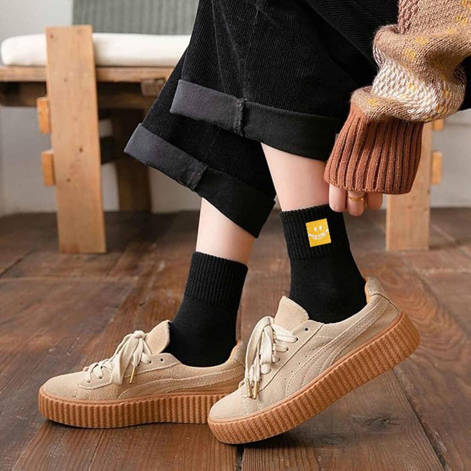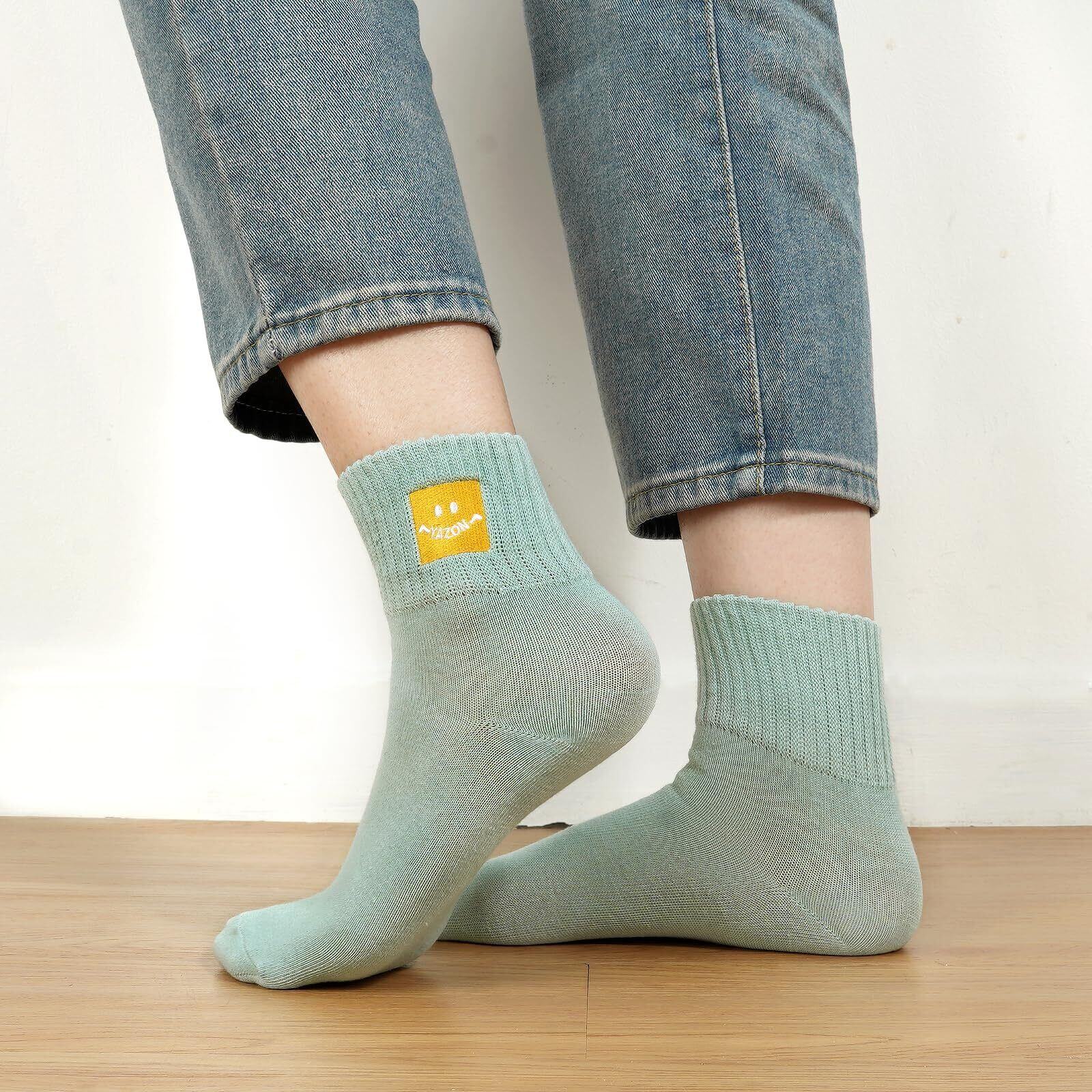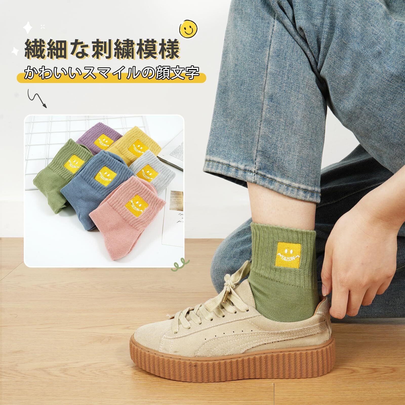 「可愛いおしゃれ-レディースおもしろ靴下」yazon靴下 レディースの足首側にとても可愛い刺繍の笑顔柄を施されておりスマイルソックス、シンプルなレディース靴下にかわいらしさが加わっています。柄は細かくで丈夫で、おしゃれユニークなエレガントで、カジュアル中に女性の可愛い魅力感じされます。人々の中にファションで人気な秋冬用 靴下 レディースです!ドレスやフォーマルなお洋服、学校制服、ショートパンツやミニスカート、Tシャツとはコーディネートできます。スニーカー、アンクル、ローファー、ドライビングシューズ、キャンバスシューズ、ローカットの靴など普段用靴ともコンパニオン最高可愛い 靴下 レディース 冬!もっと自信を演出しましょうsmile socks。