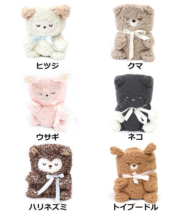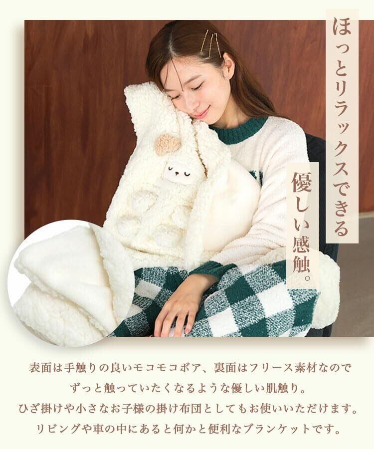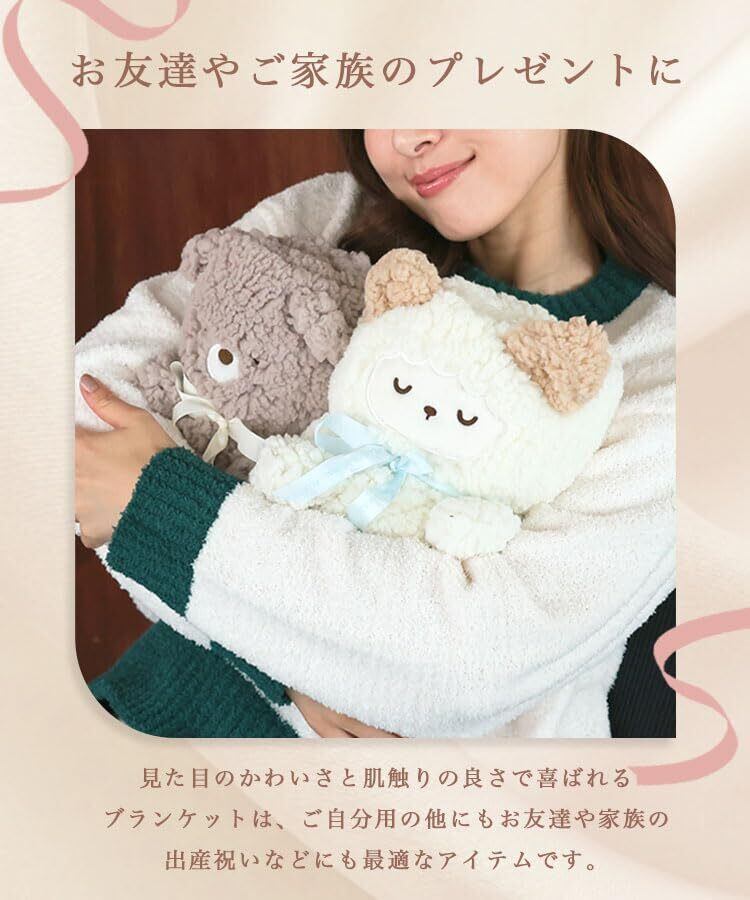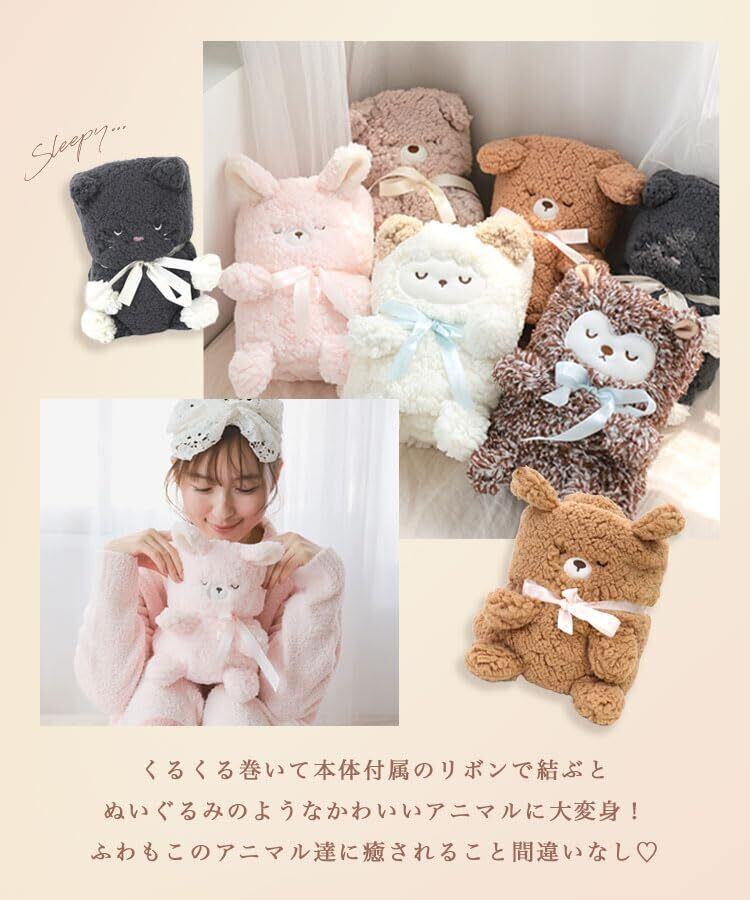 [DONOBAN] ブランケット レディース ひざ掛け 肩掛け ふわふわ もこもこ キャラクター ぬいぐるみ 耳付き 防寒 あったか 暖かい モコモコくるくるアニマルひざ掛け