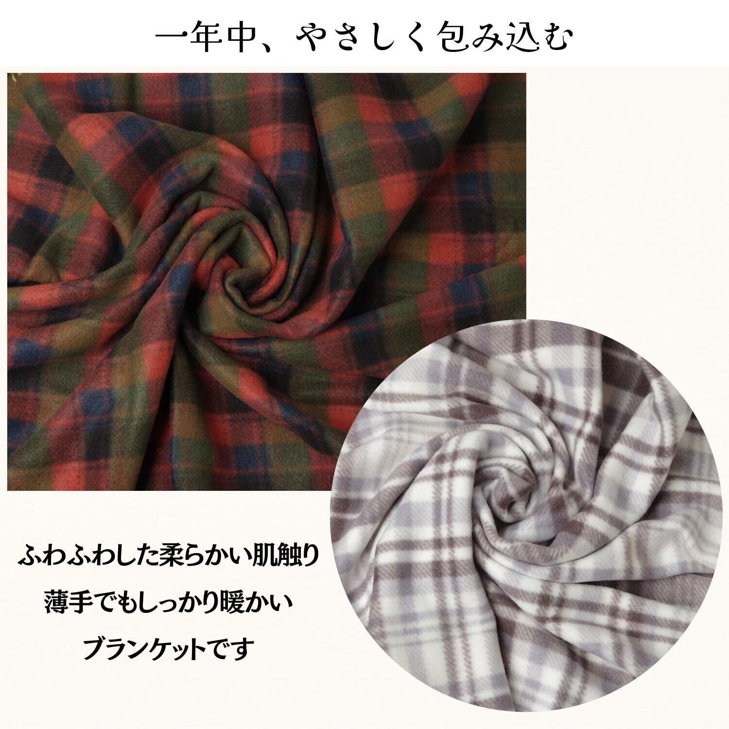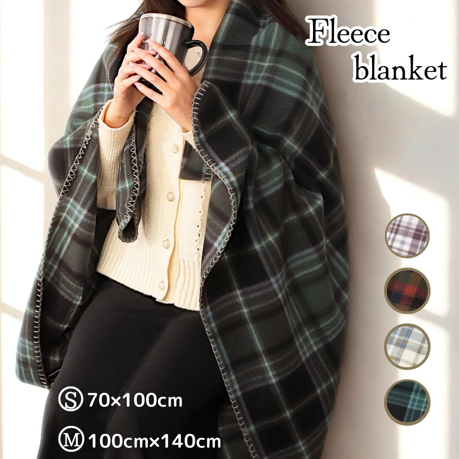 [マリブセレクト] 薄手 フリースブランケット ひざ掛け チェック柄 北欧風 ステッチ入り Mサイズ(100×140cm) Sサイズ(70×100cm) 冷房対策にも最適