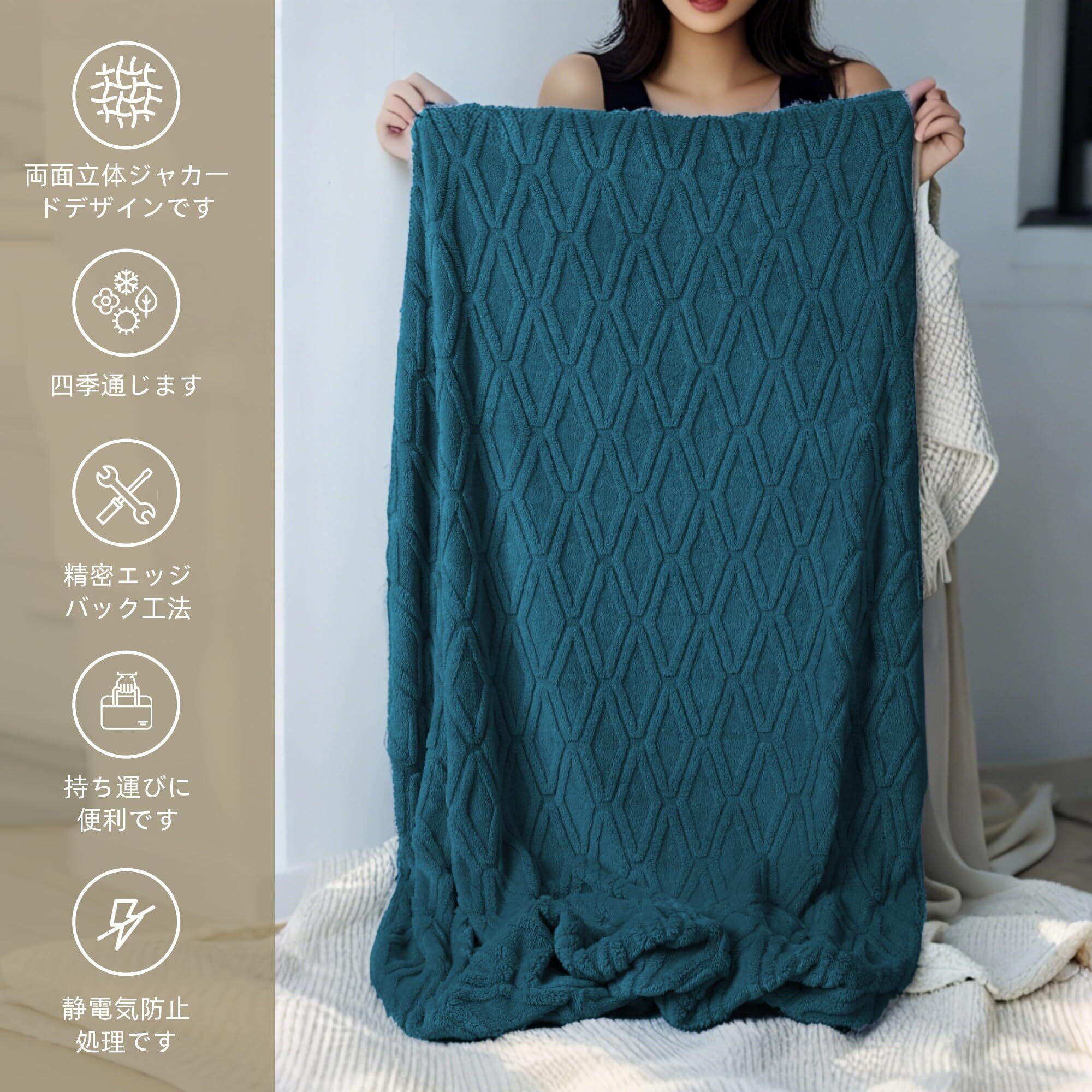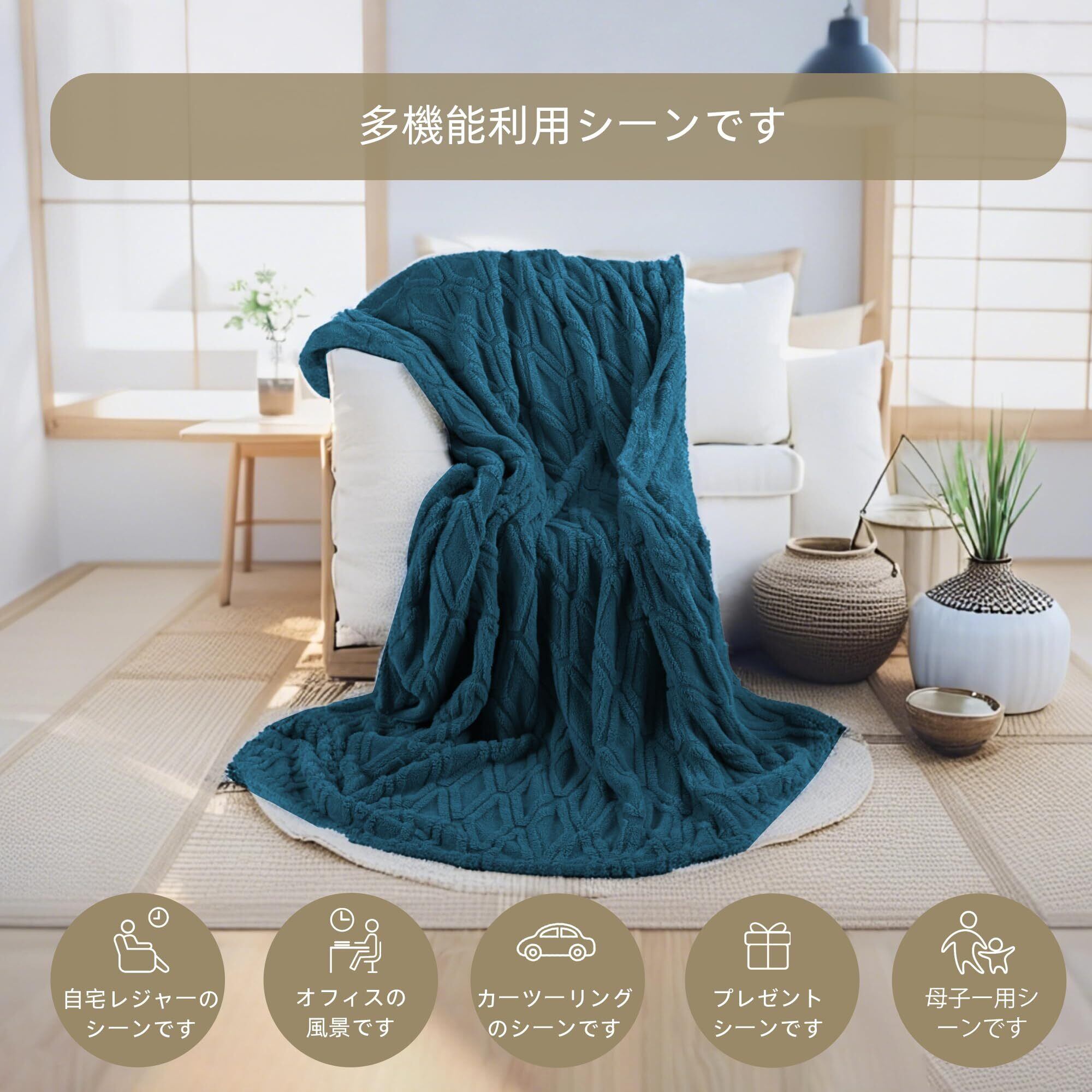 【季節を選ばない通年マルチブランケット】夏は冷房対策、冬は防寒用に!薄手でも温かい通気性設計で、ソファくつろぎから就寝時まで365日活躍。