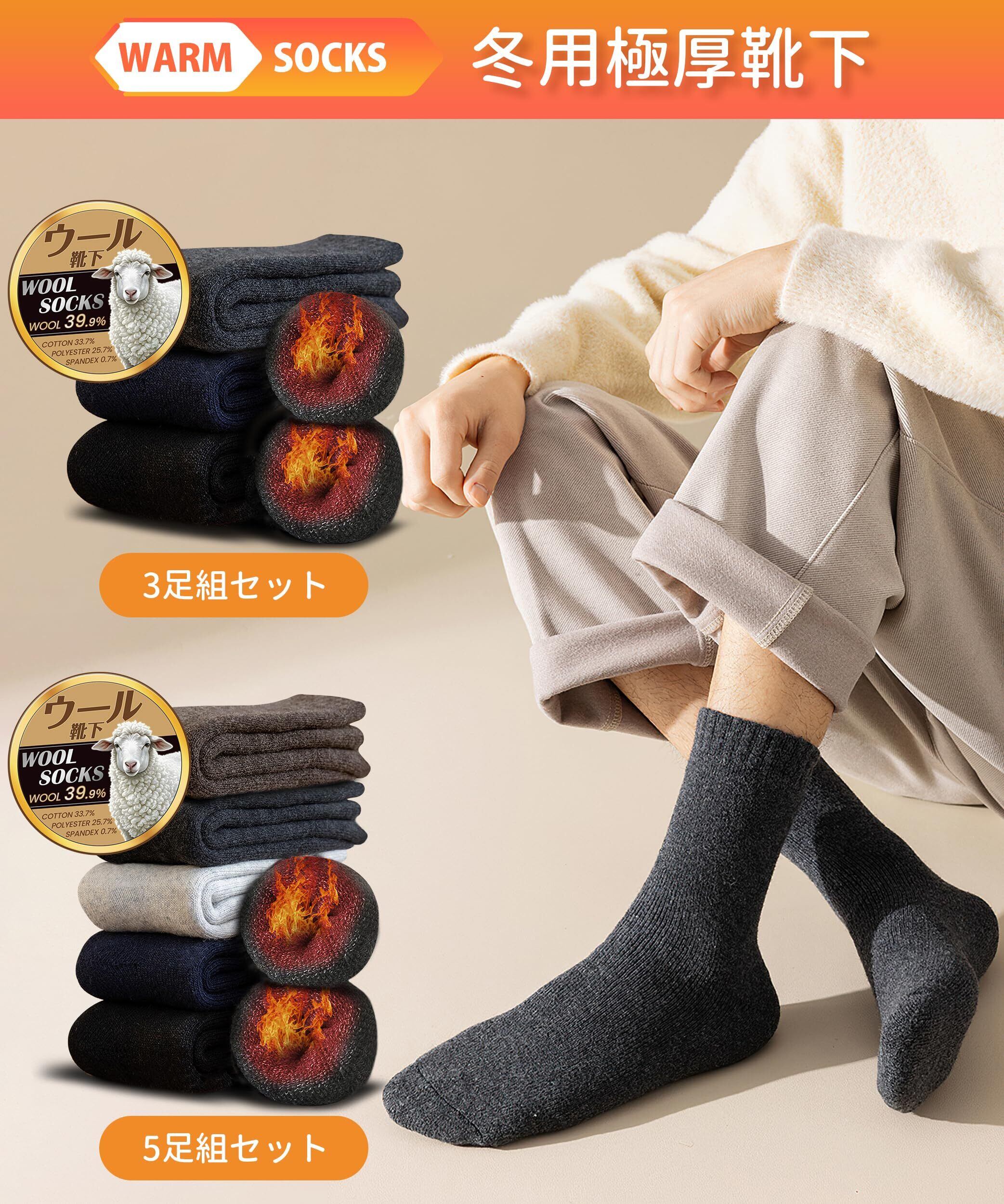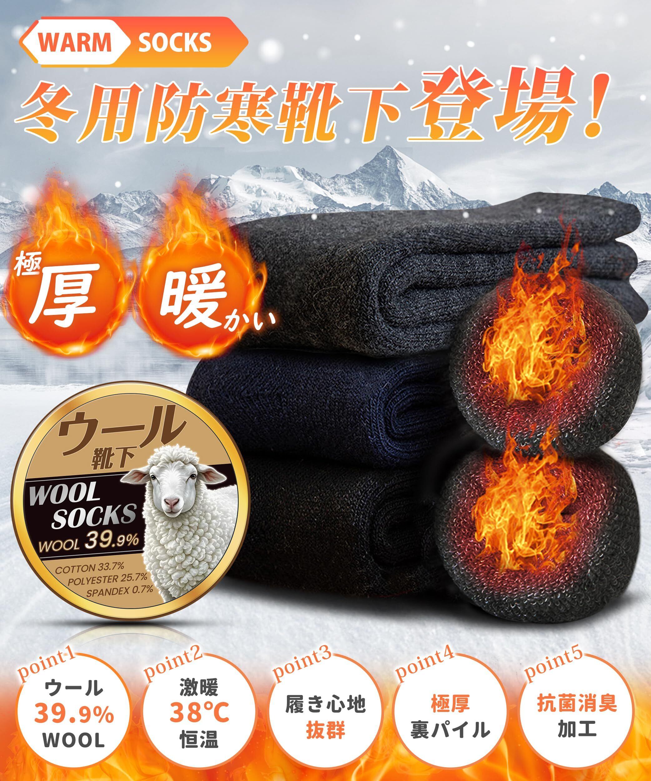 [Lavento] 【極厚ウール裏パイル】 靴下 メンズ ソックス 冬 厚手 【極暖38℃恒温・360°蓄熱】 防寒靴下 ウールソックス 抗菌消臭 防寒 保温 耐久性 伸縮性 保温 25-29㎝
