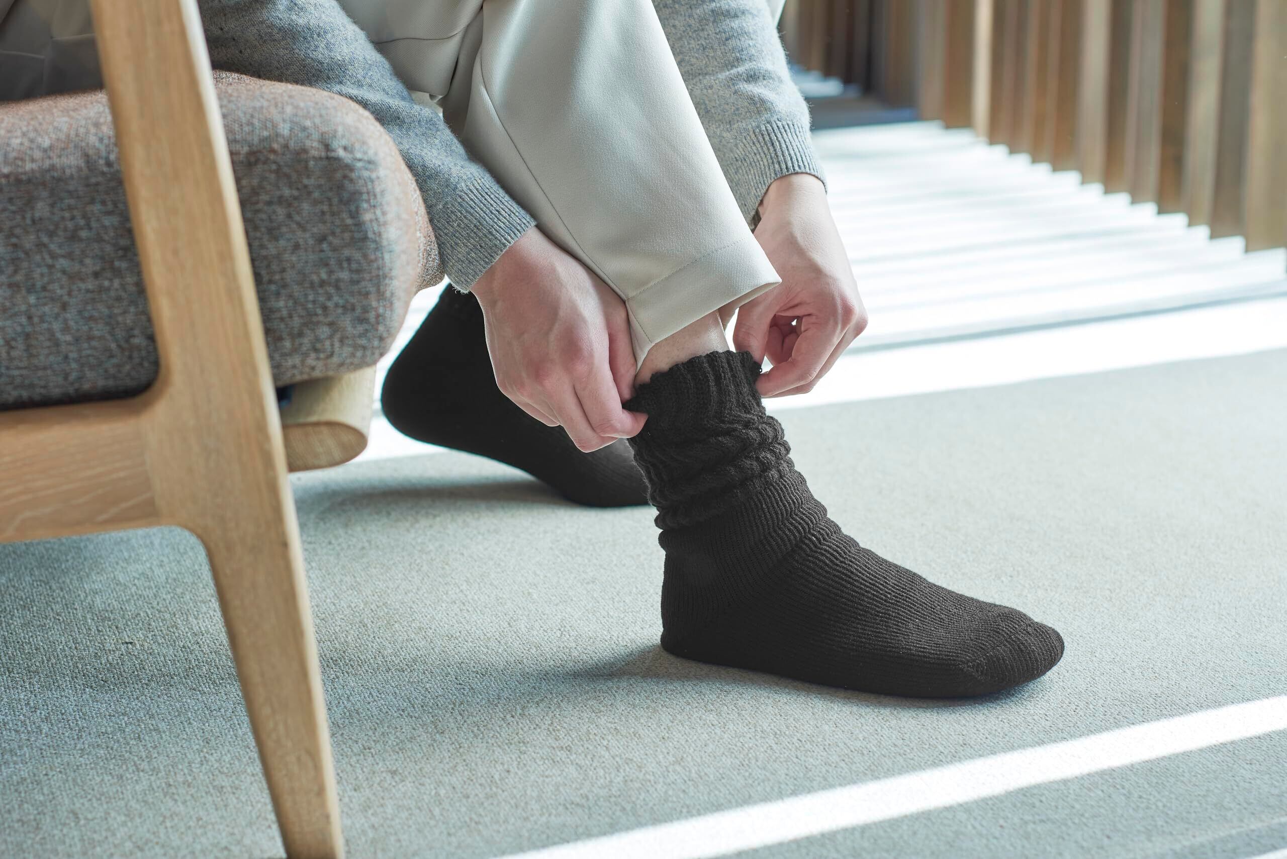 ・足首より上は、締め付け感の少ないリラックスリブで家の中でもゆったりと履ける