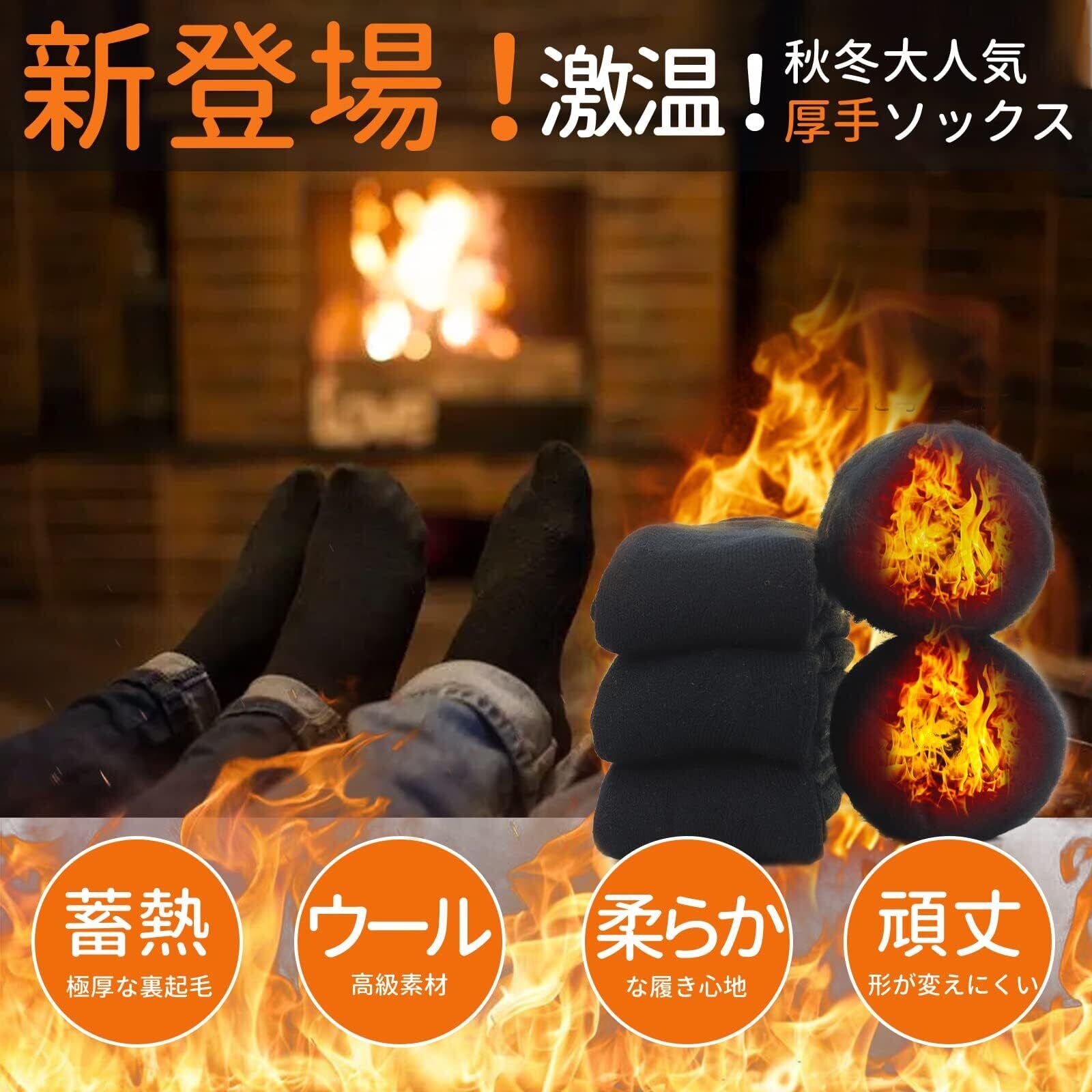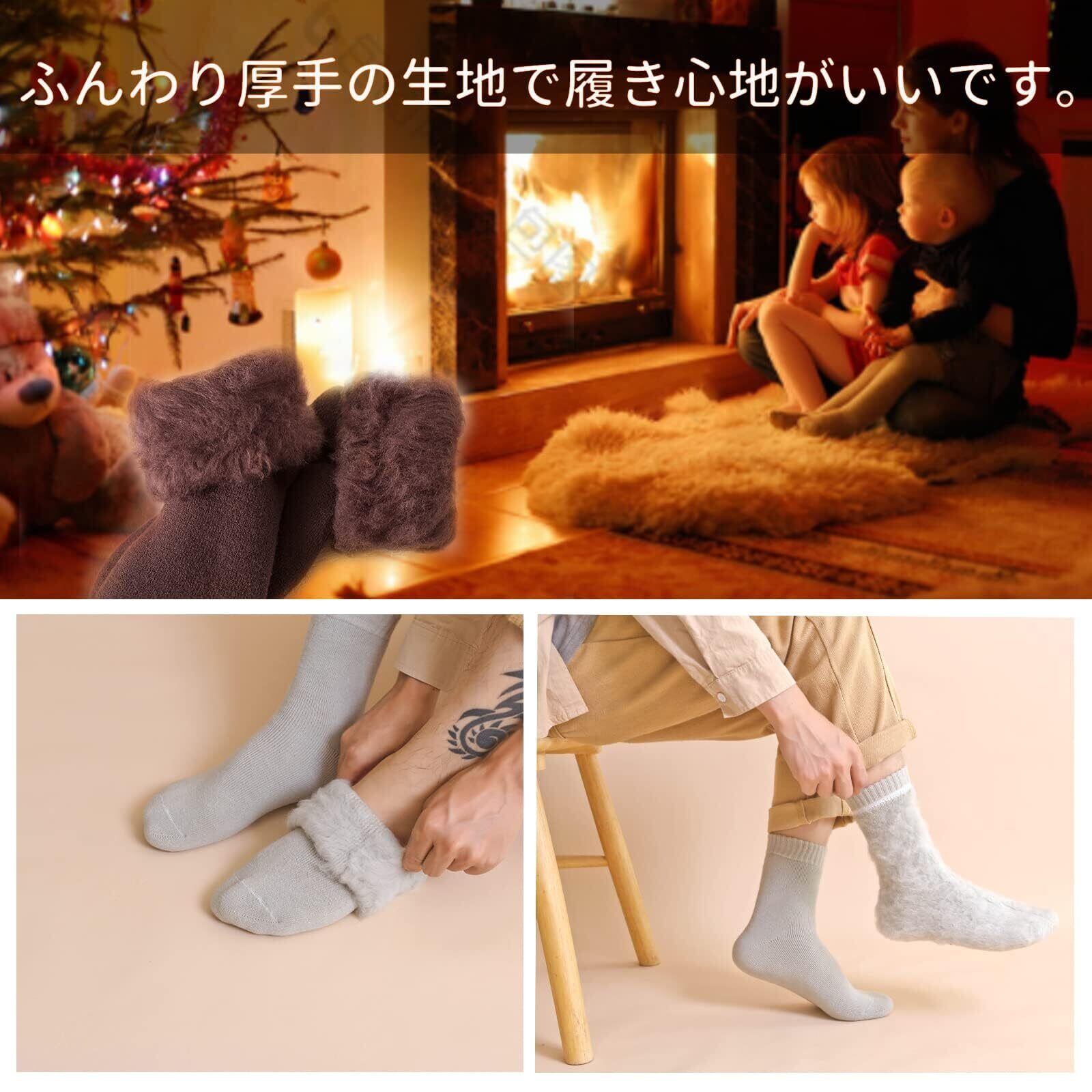 [konciwa] 靴下 メンズ 冬 厚手【極暖38℃恒温・極厚裏パイル・ウール素材・360°蓄熱】 ソックス ウールソックス 防寒 保温 消臭 耐久性 伸縮性 室内 アウトドア 登山 キャンプ 24-28㎝ 3足-5足セット
