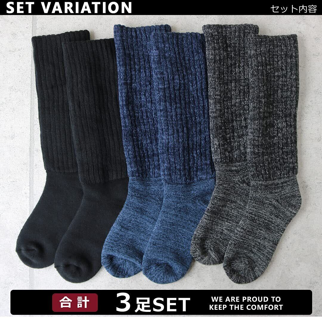 [box408] あったか 靴下 メンズ 極厚 3足セット 足元パイル 暖か 2重編み ロングソックス 保温 厚手 ルームソックス 防寒 ゆったり ハイソックス