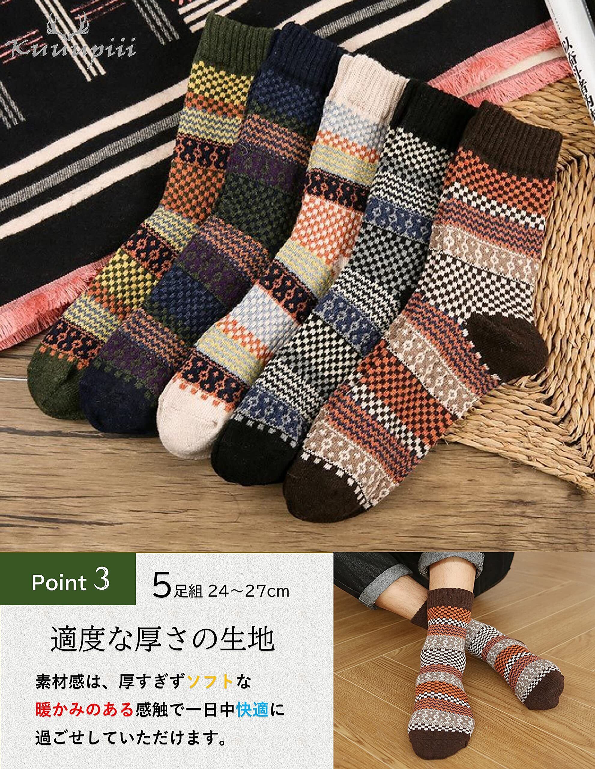 【kuuupiiiお洒落ソックス/それぞれの素材特徴】 A柄…素材 綿・ウール・ポリウレタン ※中肉厚ですが、綿高率混のためより衛生的でざっくりとした履き心地です。 B柄…素材 アクリル・ウール・ポリエステル・アンゴラ・ポリウレタン ※より暖かみがありソフトな履き心地です。 C柄…B柄と同様