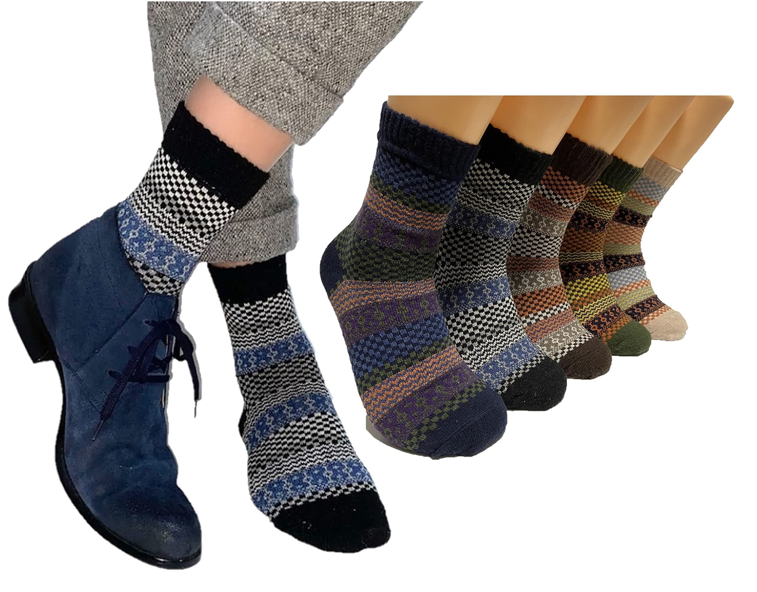 [kuuupiii] メンズ ソックス 靴下 クルーソックス ビジネス カジュアル おしゃれ 柄物 ボーダー ジャガード 抗菌防臭 吸汗速乾 秋冬春 5足組 24-27cm