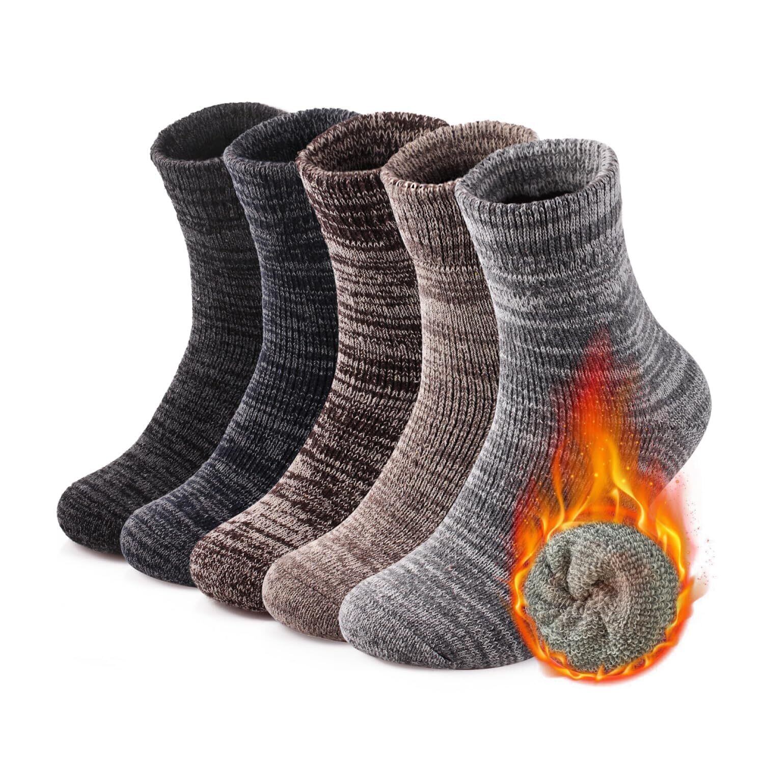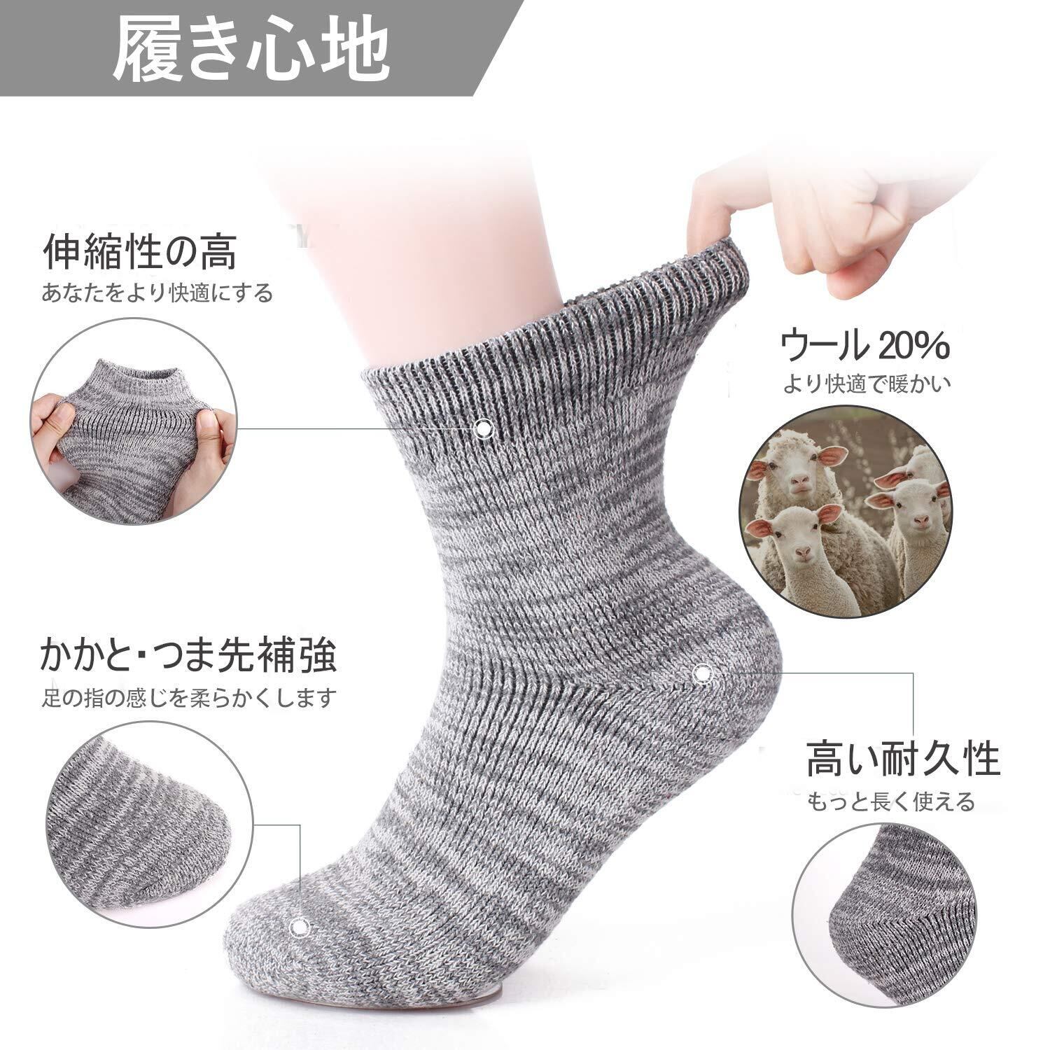 [konciwa] 靴下 メンズ 冬 厚手 防寒 あったか温暖力 スキー 足底クッション編み くつした 綿 吸汗 防臭 抗菌 靴下 アウトドア 5足セット24-28cm…