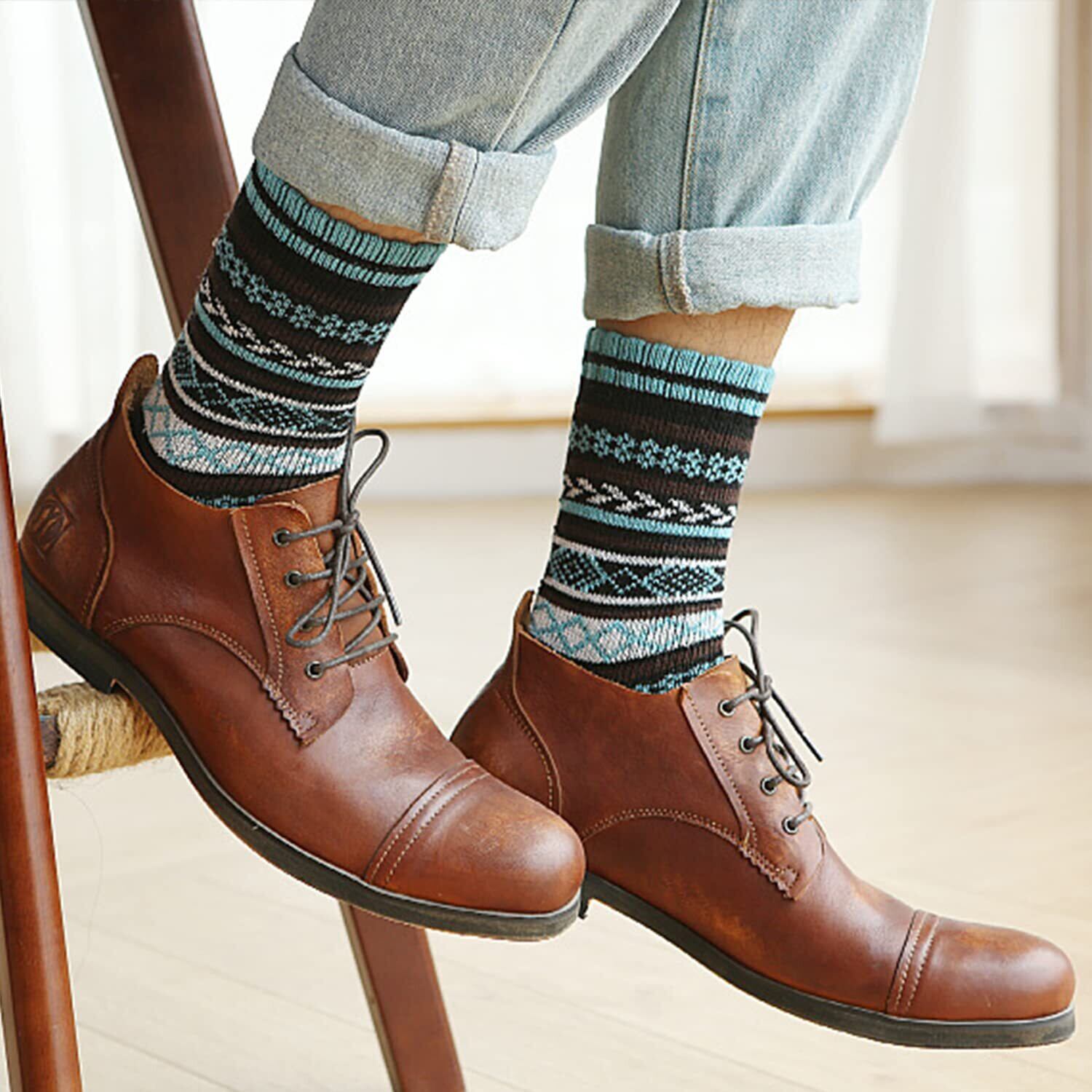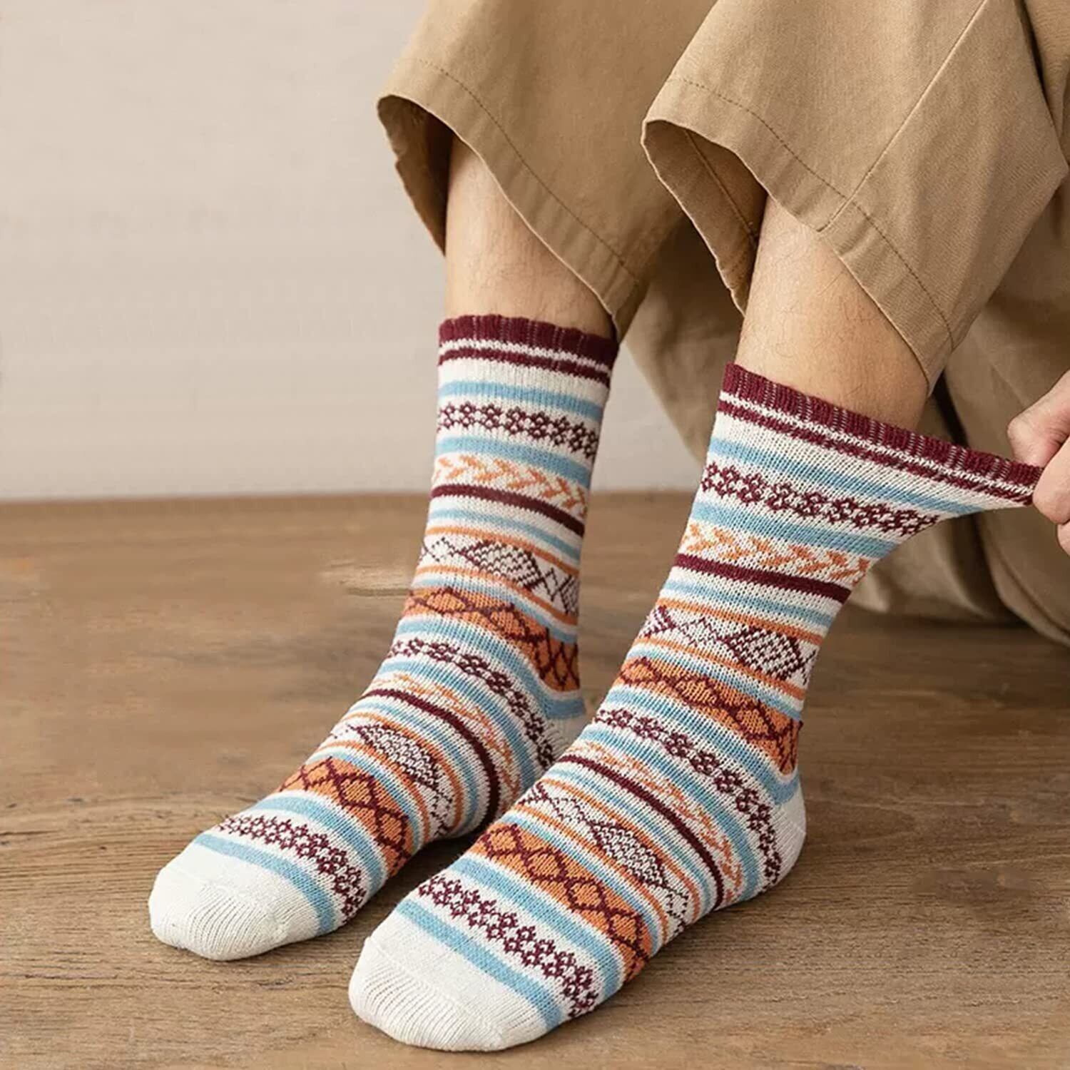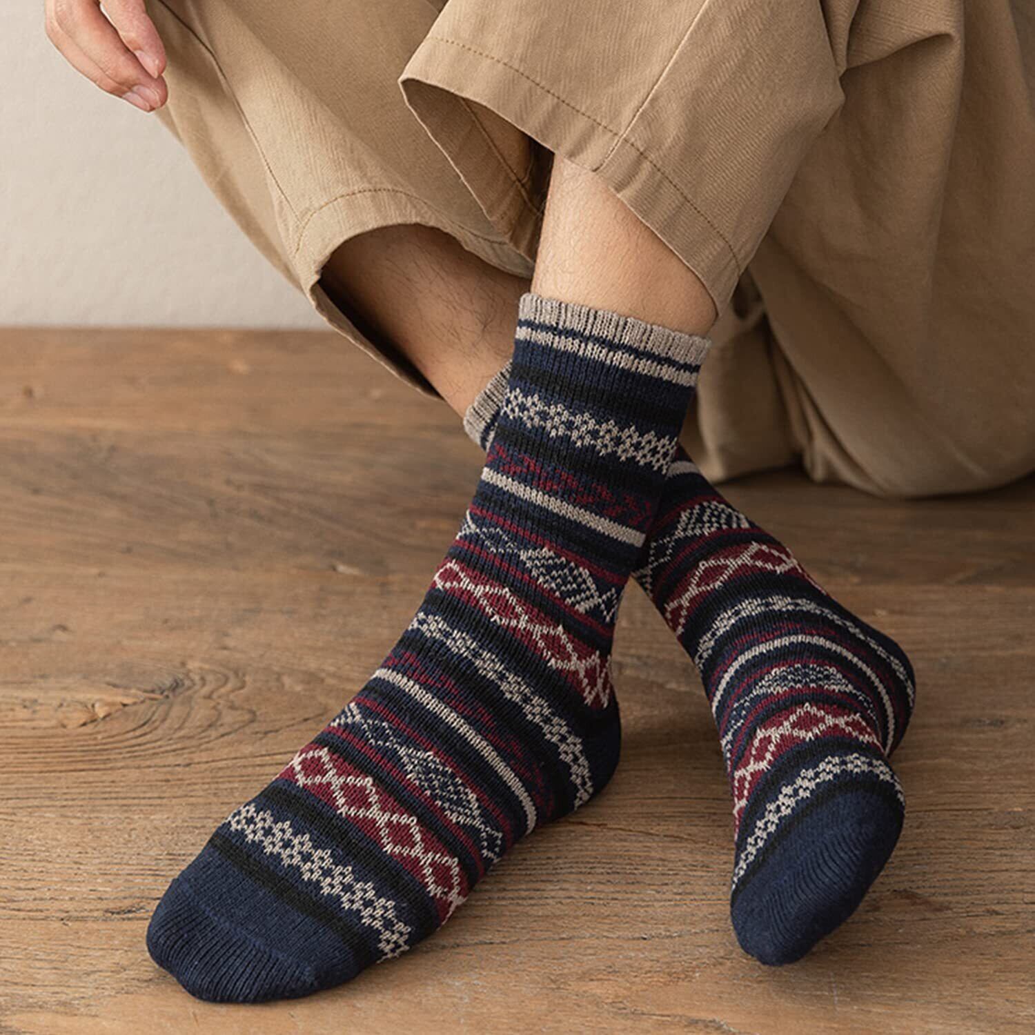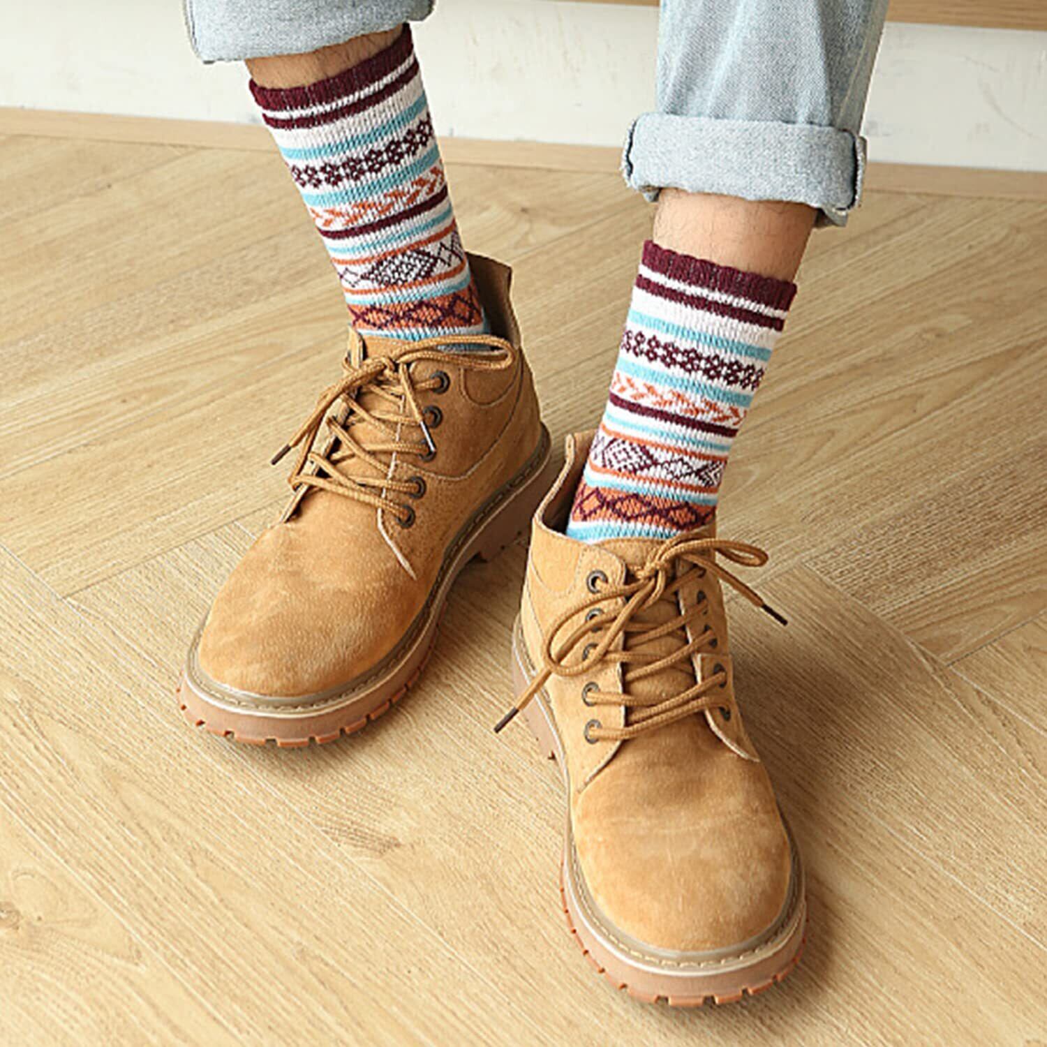カラーバリエーション5足セット民族風メンズ靴下冬用あったかい靴下男性用防寒ソックス冬用おしゃれくつしたメンズ冬のスポーツソックス