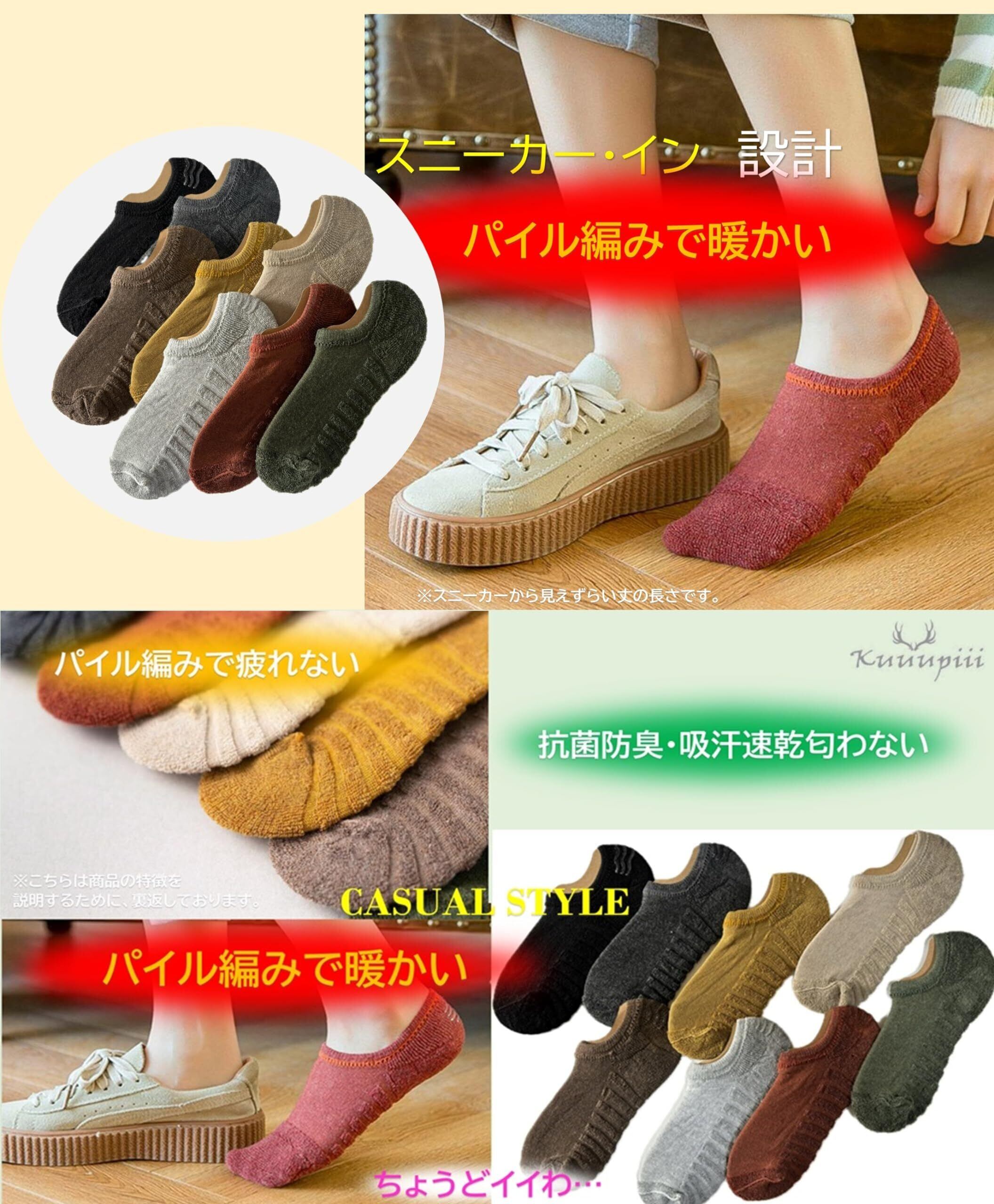 [kuuupiii] 【靴下ソムリエ監修】 スニーカーイン スニーカーソックス フットカバー 深履き 靴下 レディース ソックス パイル編み スポーツソックス 登山 カジュアルソックス おしゃれ