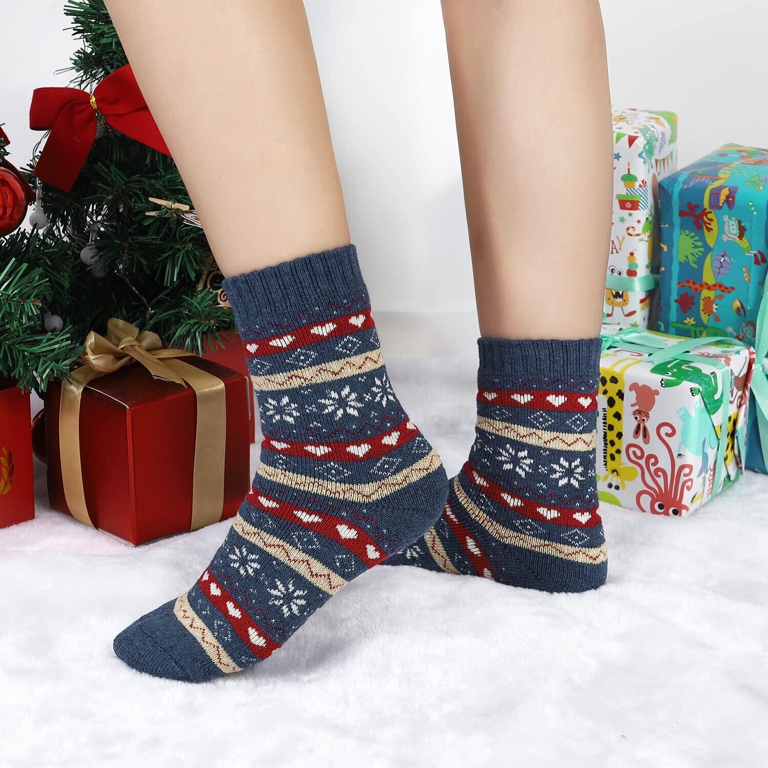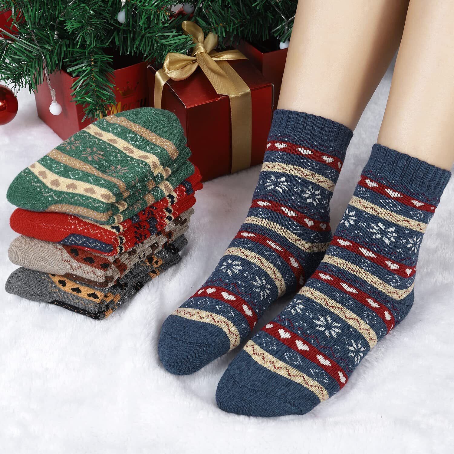 [DAMILY] 靴下 レディース 暖かい 冬 ソックス 厚手 防寒 くつした レディース 綿 かわいい 保温性 カラフル あったか 冬用靴下 5足セット 花柄 女性用 クルーソックス アウトドア 冷え取りくつ下 北欧 22-24.5㎝ カジュアルソックス