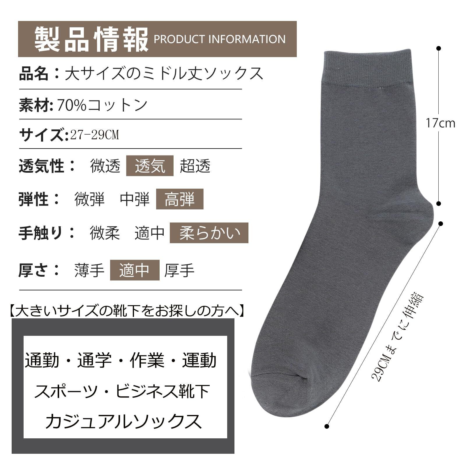 [Yazon] 靴下 メンズ 27-29cm【 大きいサイズ・伸縮ゆるい】 春夏秋 通気コーマ綿 クルーソックス 防臭吸汗 靴下 男性 スポーツソックス ビジネスくつした 紳士 カジュアル 登山 通勤通学 四季用くつ下 6足セット