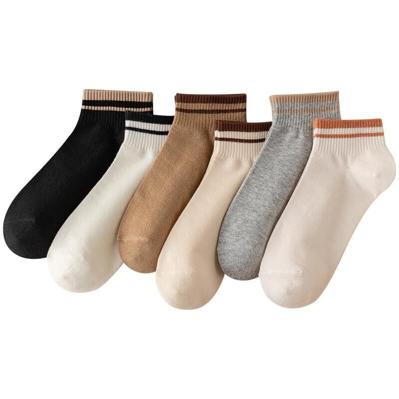 [Yanmcxly] 6足セット 靴下 レディース くるぶし ソックス 女 性 用 ストライプ スポーツ オシャレ 可愛い くつした 部屋着 通学 通勤 室内 アウトドア 22~25cm