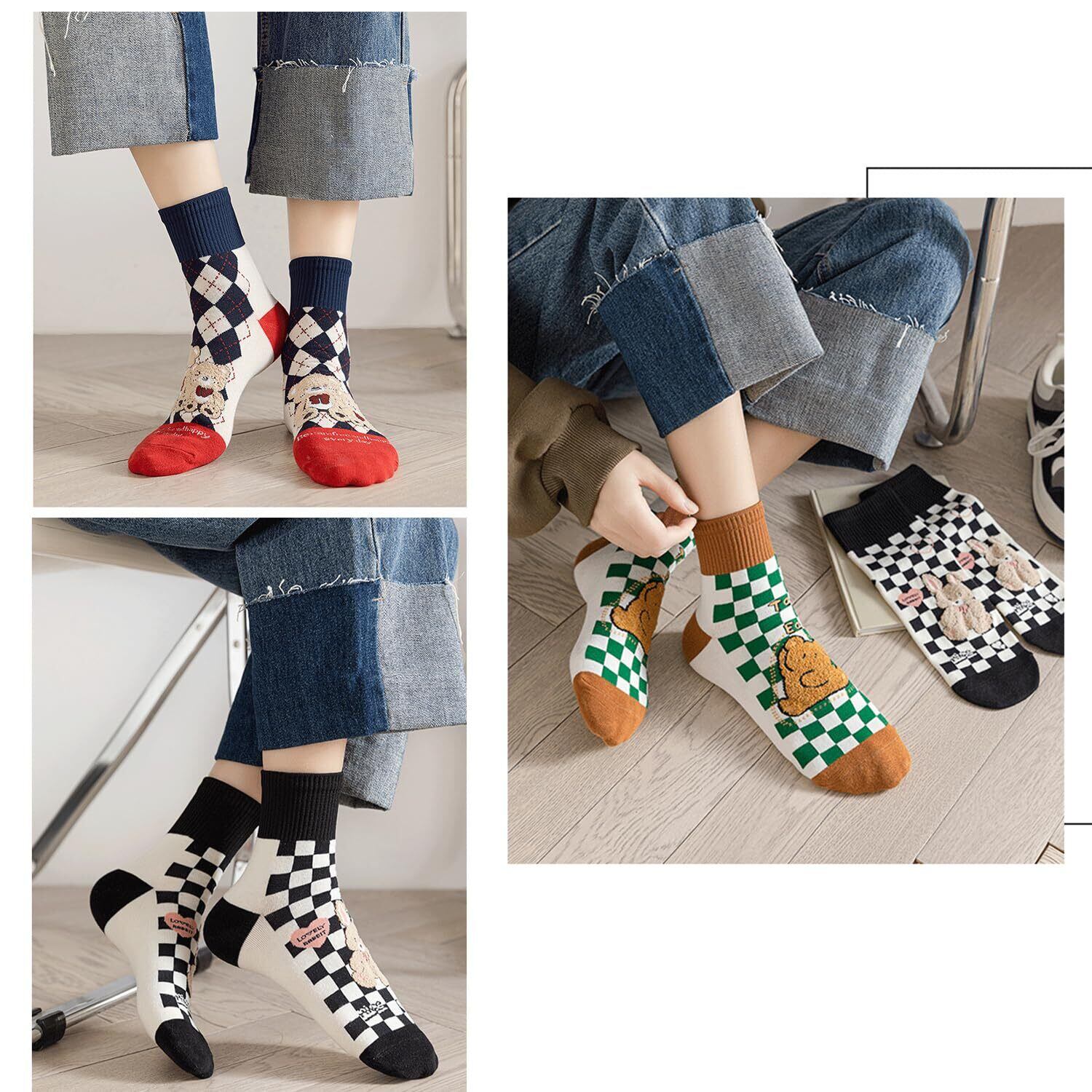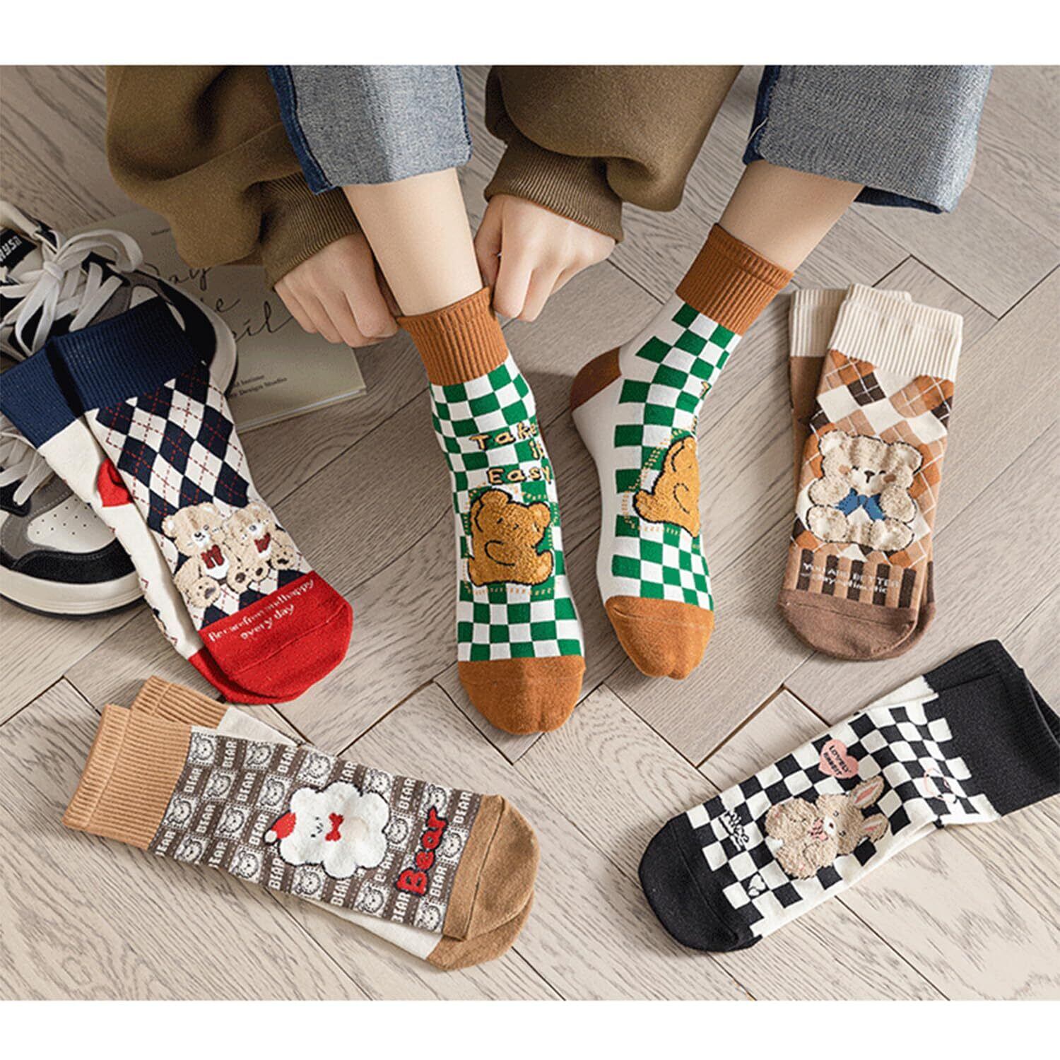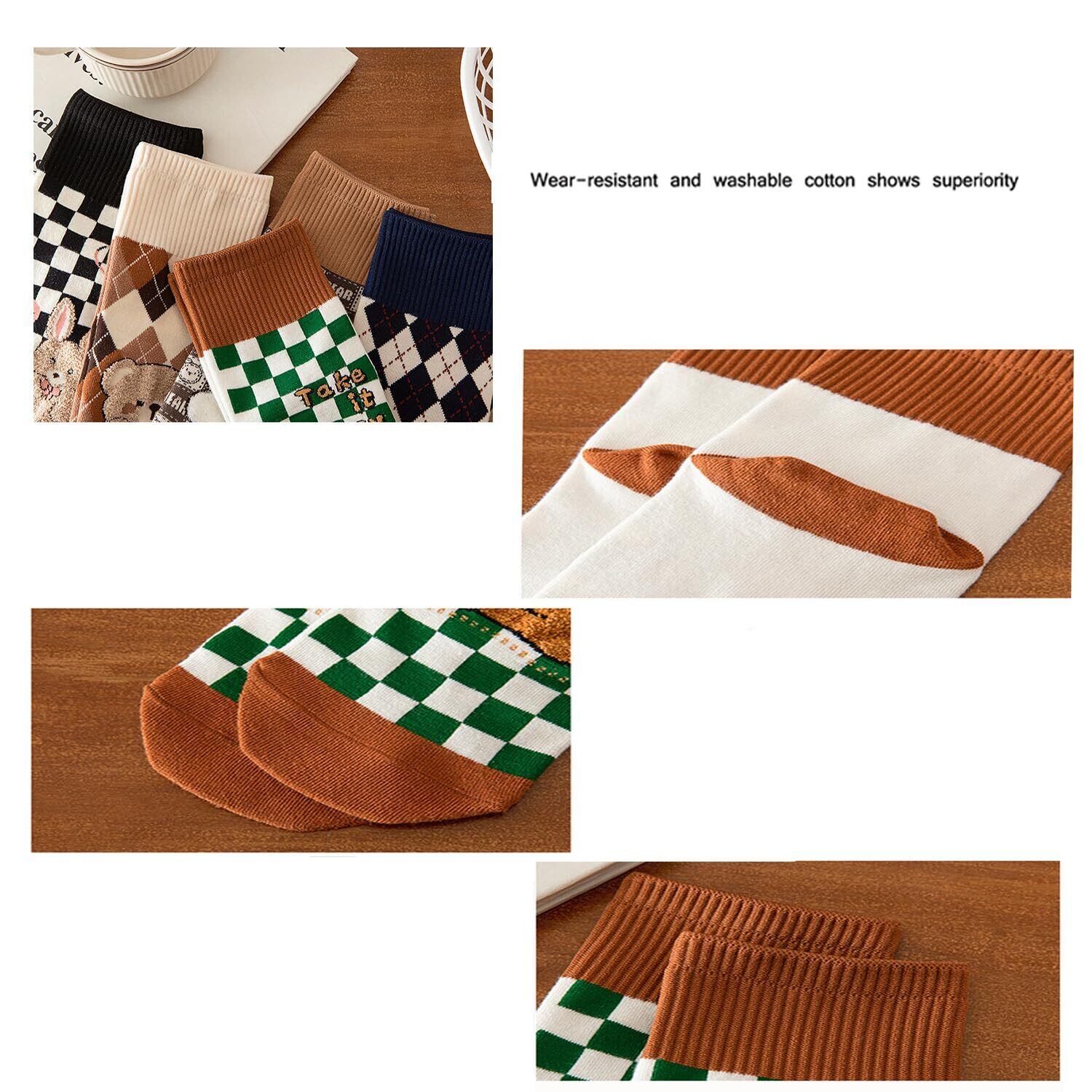 [SINEXE] 靴下 レディース ソックス 秋冬春 5足セット カラーソックス 女性用 通気 可愛い靴下 クルーソックス 中厚手ソックス 伸縮性 部屋着 通学 通勤 22-25cm