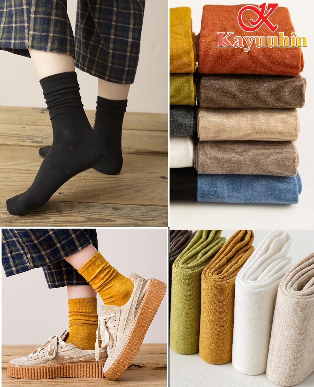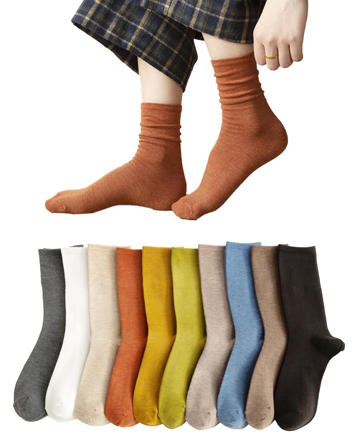 [Kayuuhin] 靴下 レディース ソックス 春秋冬 10足セット カラーソックス 女性用 かわいい カジュアルソックス 通気 暖かい靴下 中厚手ソックス 部屋着 通学 通勤 室内 アウトドア