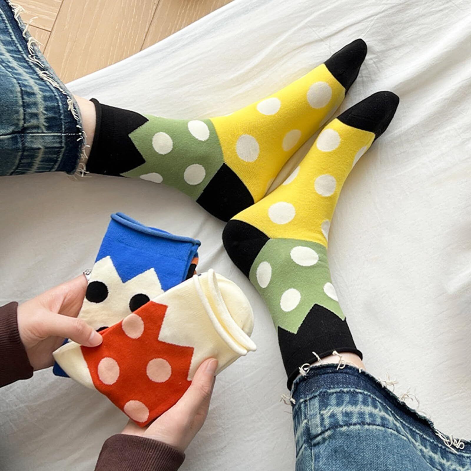 【合わせやすい】:豊富なバリエーションとファッションなドット柄デザイン、スニーカー、ローファー、バレエシューズ、運動靴などやさまざまなタイプの服と合わせ、日常からオフィススタイルまでさまざまなシーンに合わせて使えます。足の形状に合わせて確り縫製され、足首や踵など摩擦が激しいところでも破れることはなく、長い間のご愛用頂けます。