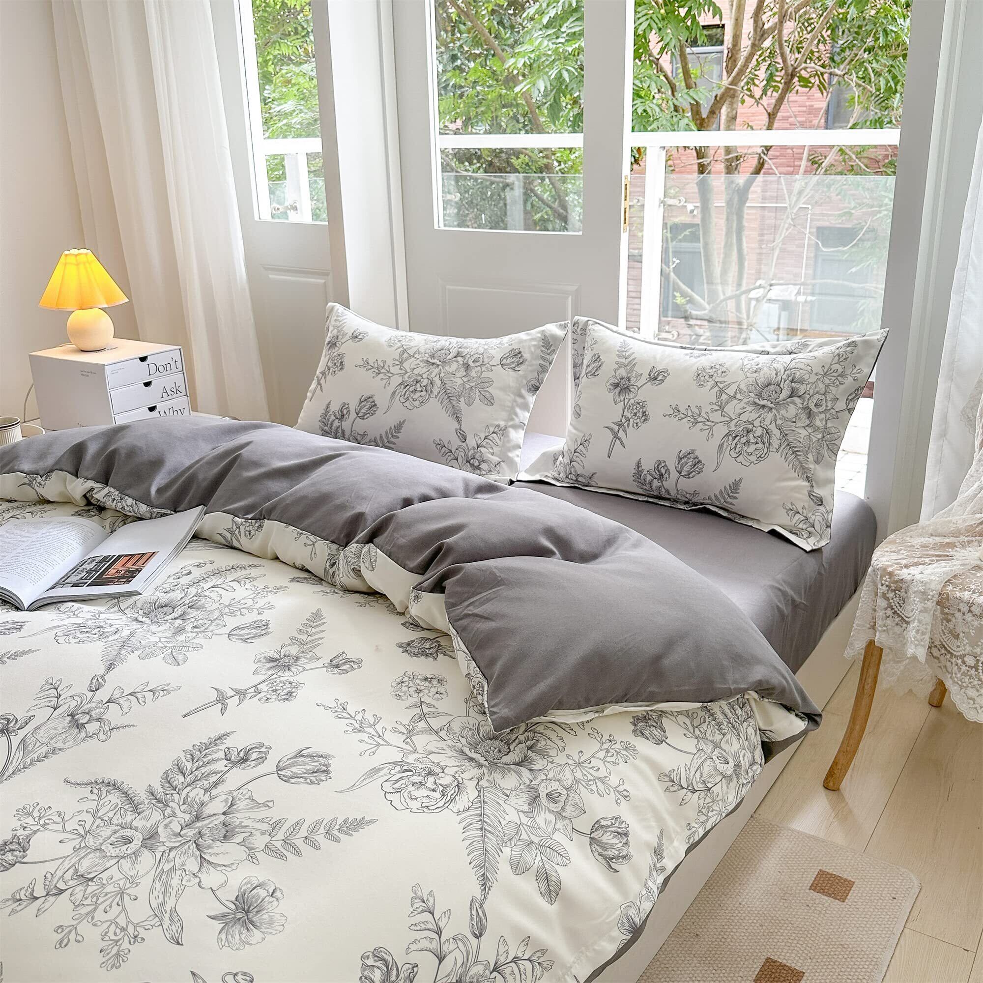 布団カバー 花柄 掛け布団 寝具 おしゃれ ダブルファスナー 単品販売 (掛カバー150*210cm, Black)