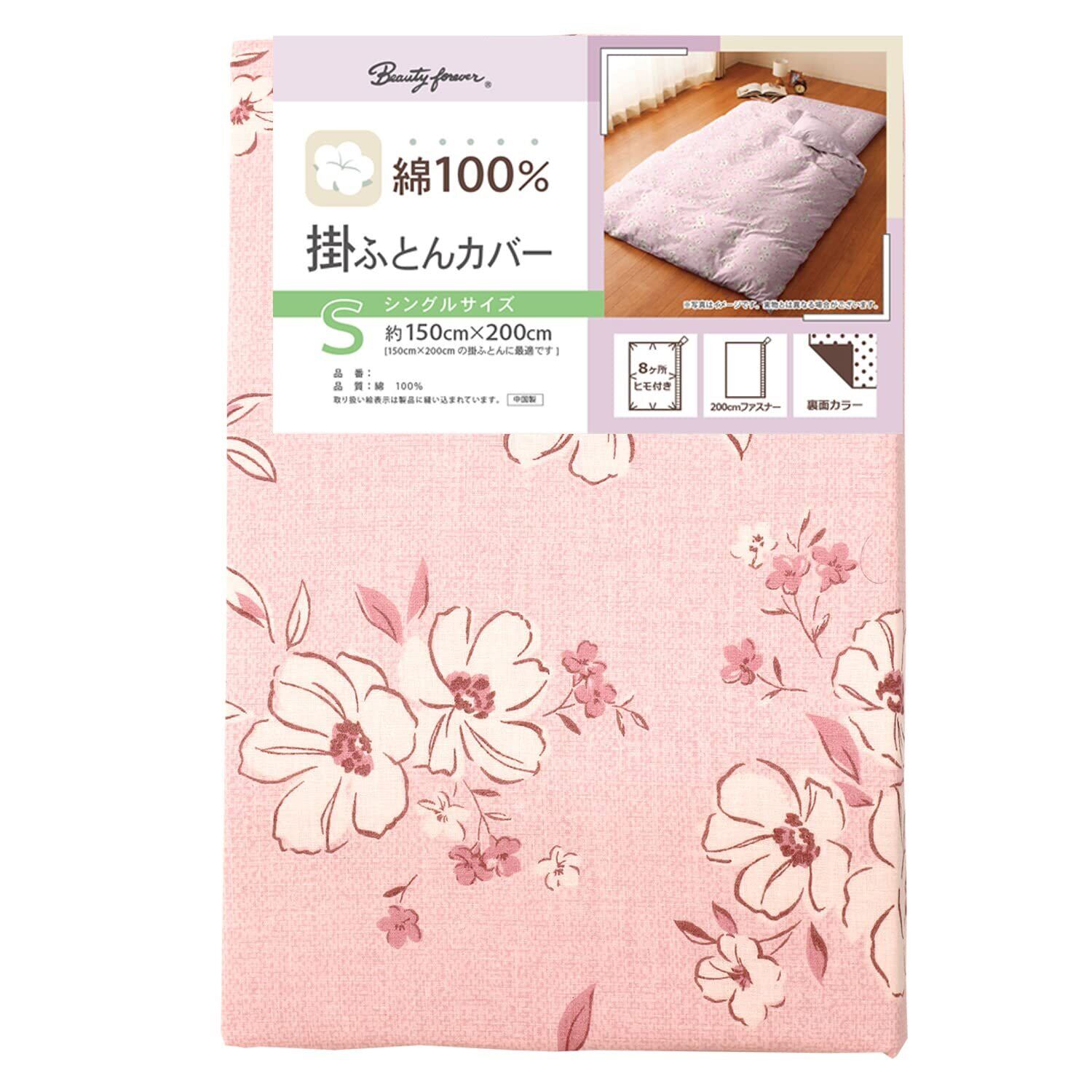 メリーナイト 掛け布団カバー 「アネモネ」 ピンク シングル 約150×200cm 綿100% 吸湿性 通気性 心地よい肌触り オールシーズン 洗える CT12013-16