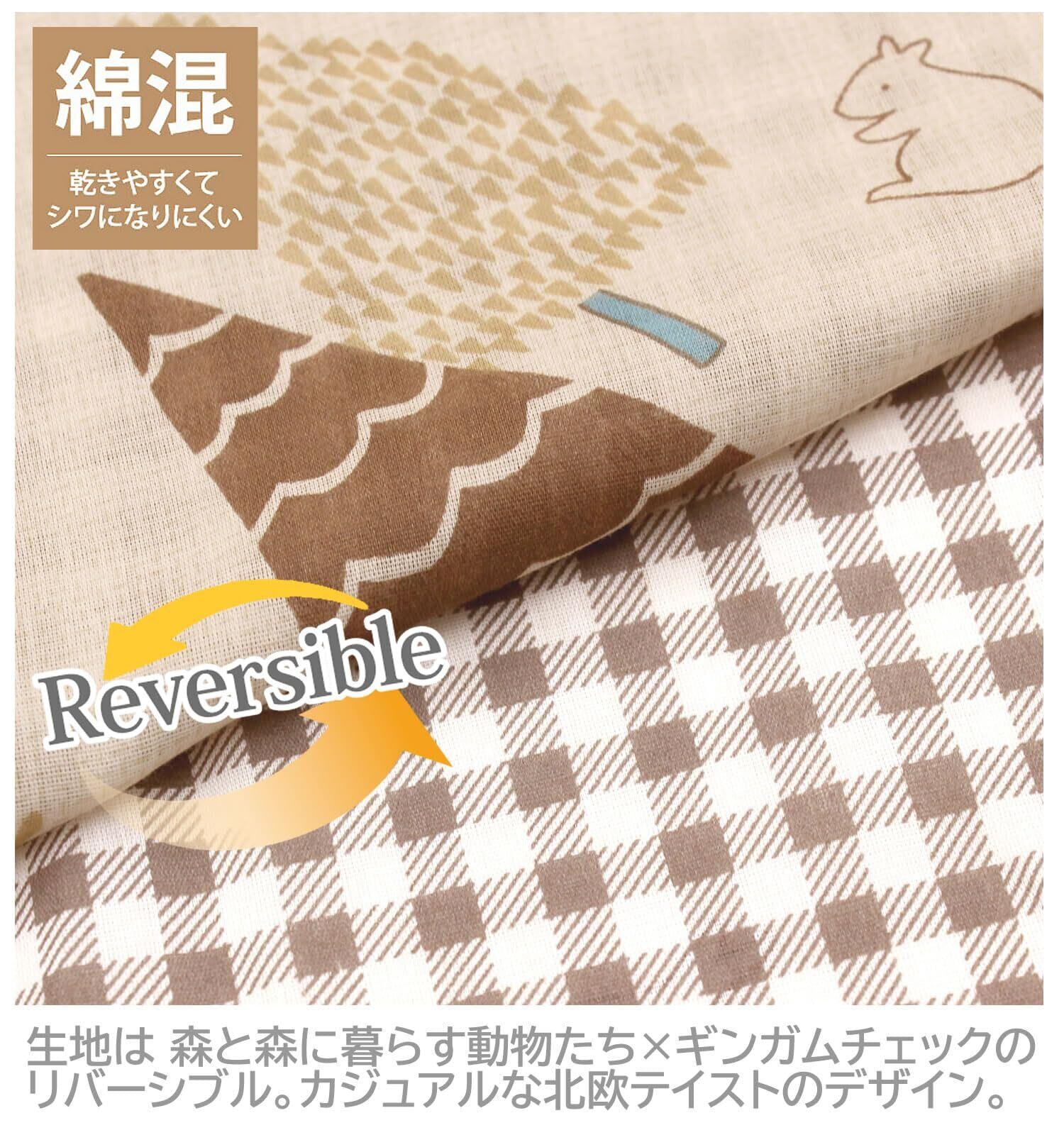 表面:北欧ツリー柄 / 裏面:ギンガムチェック柄 違う柄のプリントで2つの柄が楽しめる。