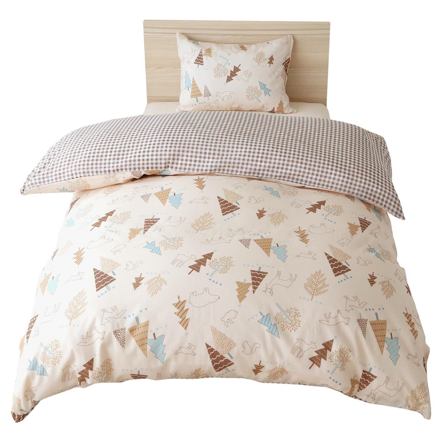 メリーナイト 掛布団カバー 「北欧ツリー/ギンガムチェック」 ブラウン シングルロング 約150×210cm リバーシブル仕様 両面使える 内側スナップボタン8カ所付き 着脱簡単 綿混素材 速乾 シワになりにくい 洗える 衛生 清潔 オールシーズン MN12152-93