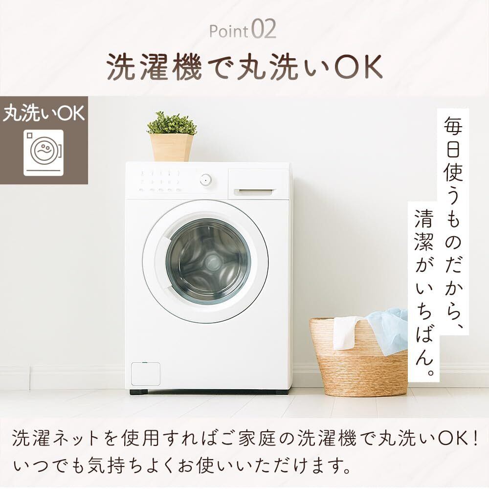 【家庭で丸洗い可能】 ご家庭の洗濯機で丸洗いが可能です(洗濯ネット推奨)。しわになりにくく縮みにくい素材のため、家事や育児で忙しい方でも毎日のお手入れが簡単で清潔さを保てます。