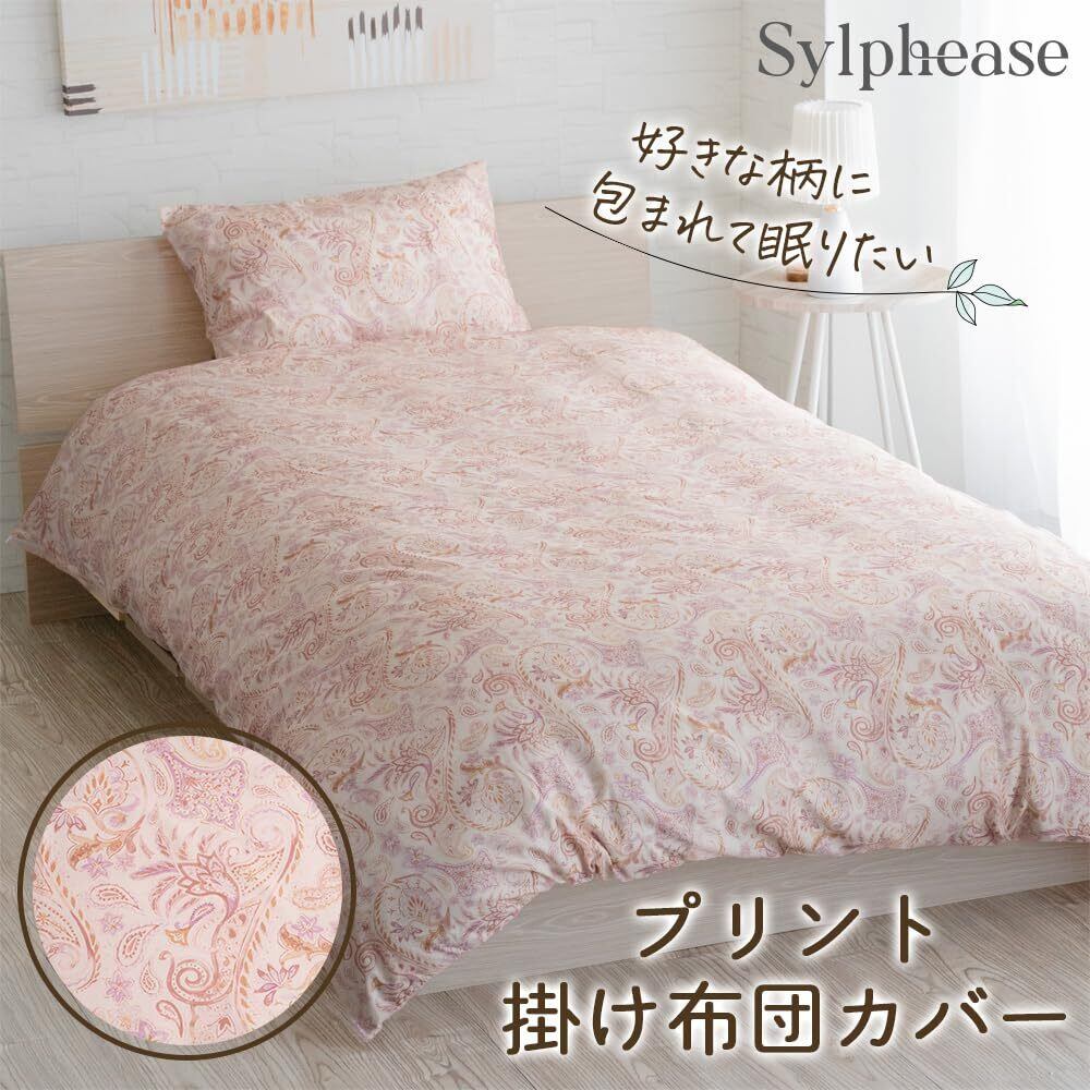 シルフィーズ 掛け布団カバー シングル 150×210cm ピーチスキン 全開ファスナー 8ヶ所ヒモ付き ペイズリー ピンク 速乾 洗える 北欧