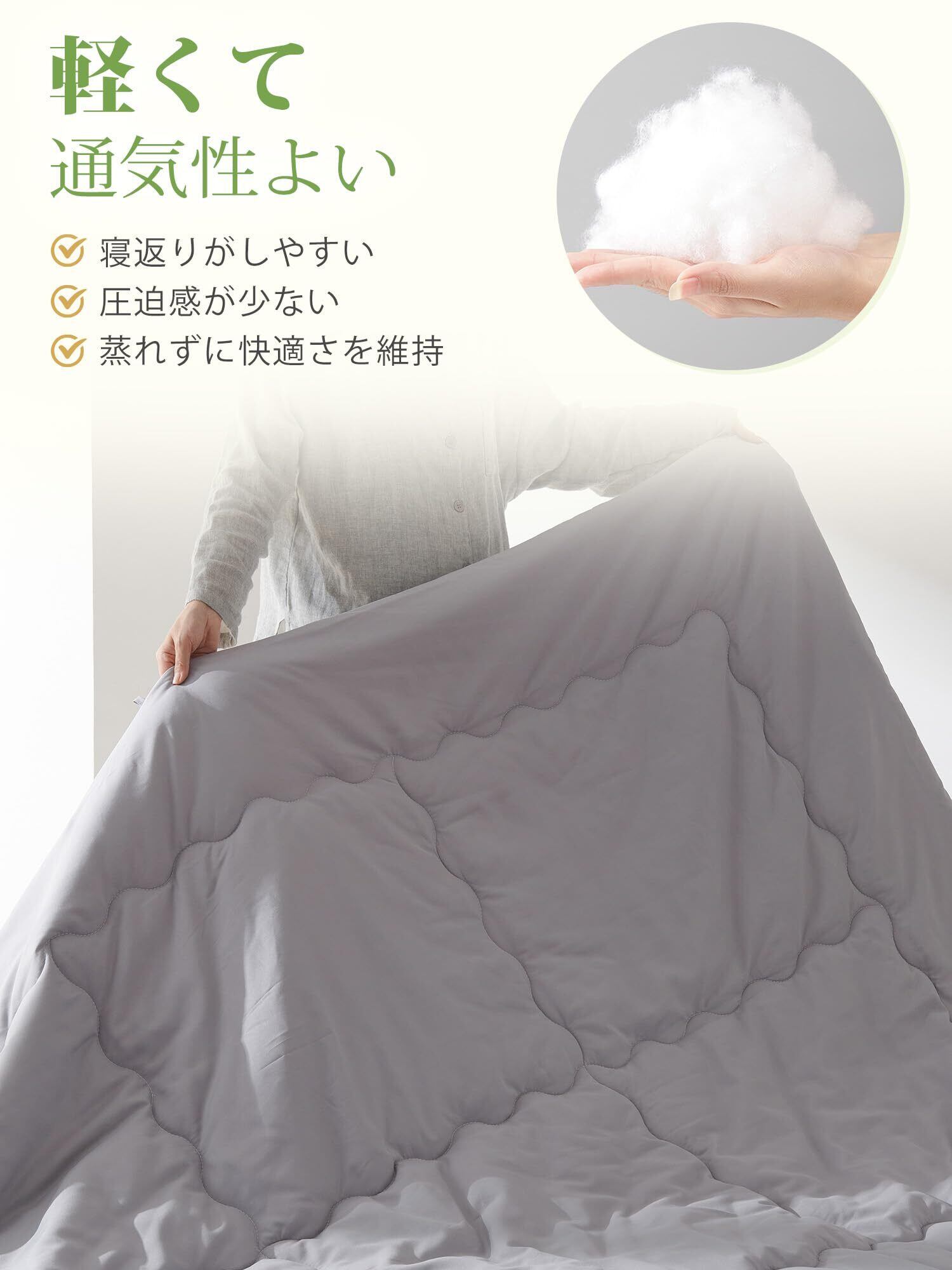 クモリ(Kumori) 掛け布団 シングル 合掛け布団 春夏秋 軽量 洗える 「TEIJIN 抗菌消臭中棉」 ほどよい保温力 薄手 1.3kg 柔らかい ほこりが出にくい 通気 肌掛け布団 グレー 150X210cm