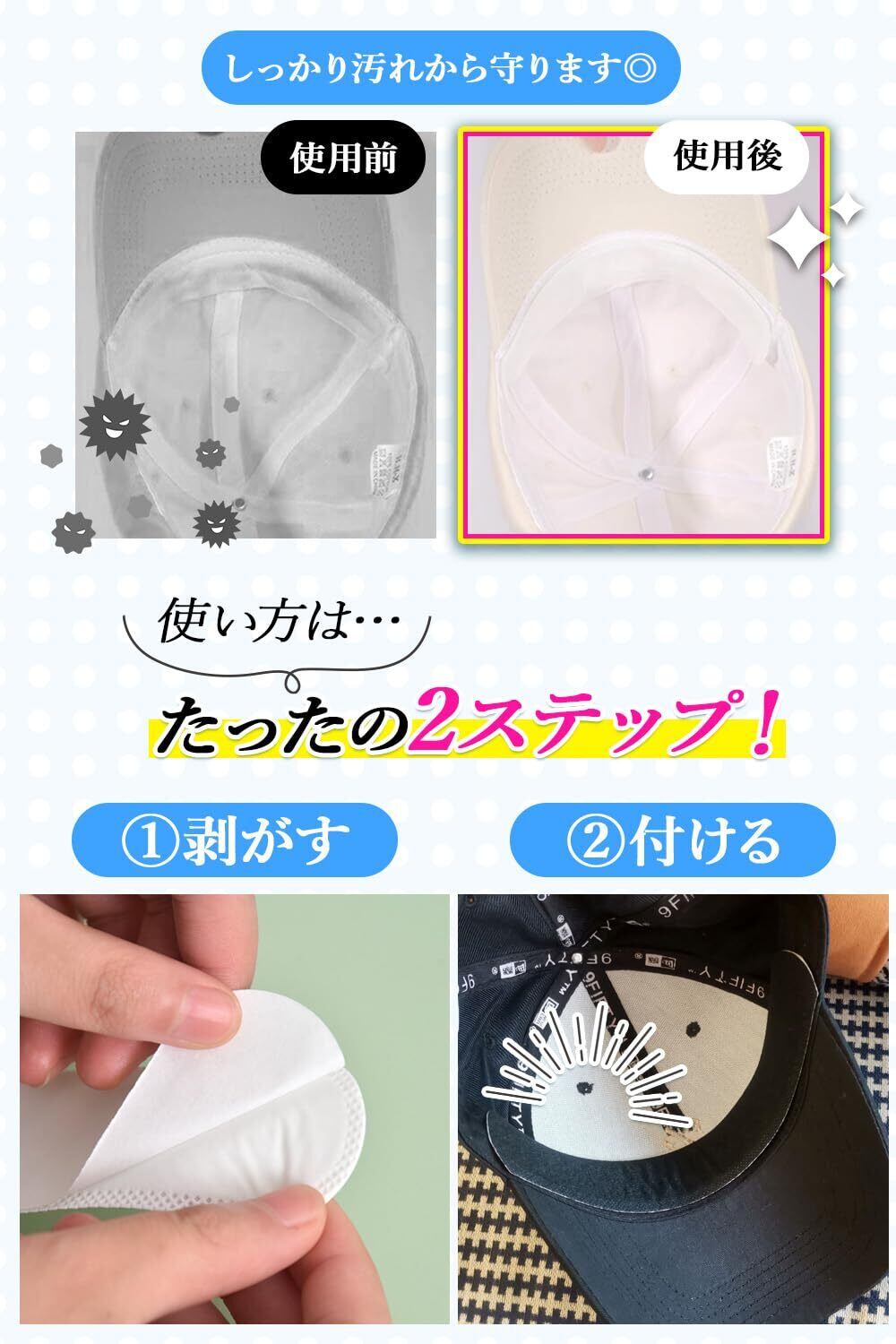 【汗ジミ・メイク崩れにもう悩まない!】 帽子の内側やシャツに貼るだけ! 汗をしっかり吸収し、黄ばみ・カビ・メイク崩れをしっかりガード。 帽子のスベリ部分に貼れば、汗ジミを防ぎ、汗が顔に垂れるのもブロック。化粧くずれが気になる方にもぴったりです。 さらに、シャツの襟や袖口に貼れば、皮脂汚れや黄ばみ・黒ずみの予防にも◎。 使い終わったらシートを剥がすだけでOK。 毎日の汗対策がぐっとラクに、衣類も長持ちします!