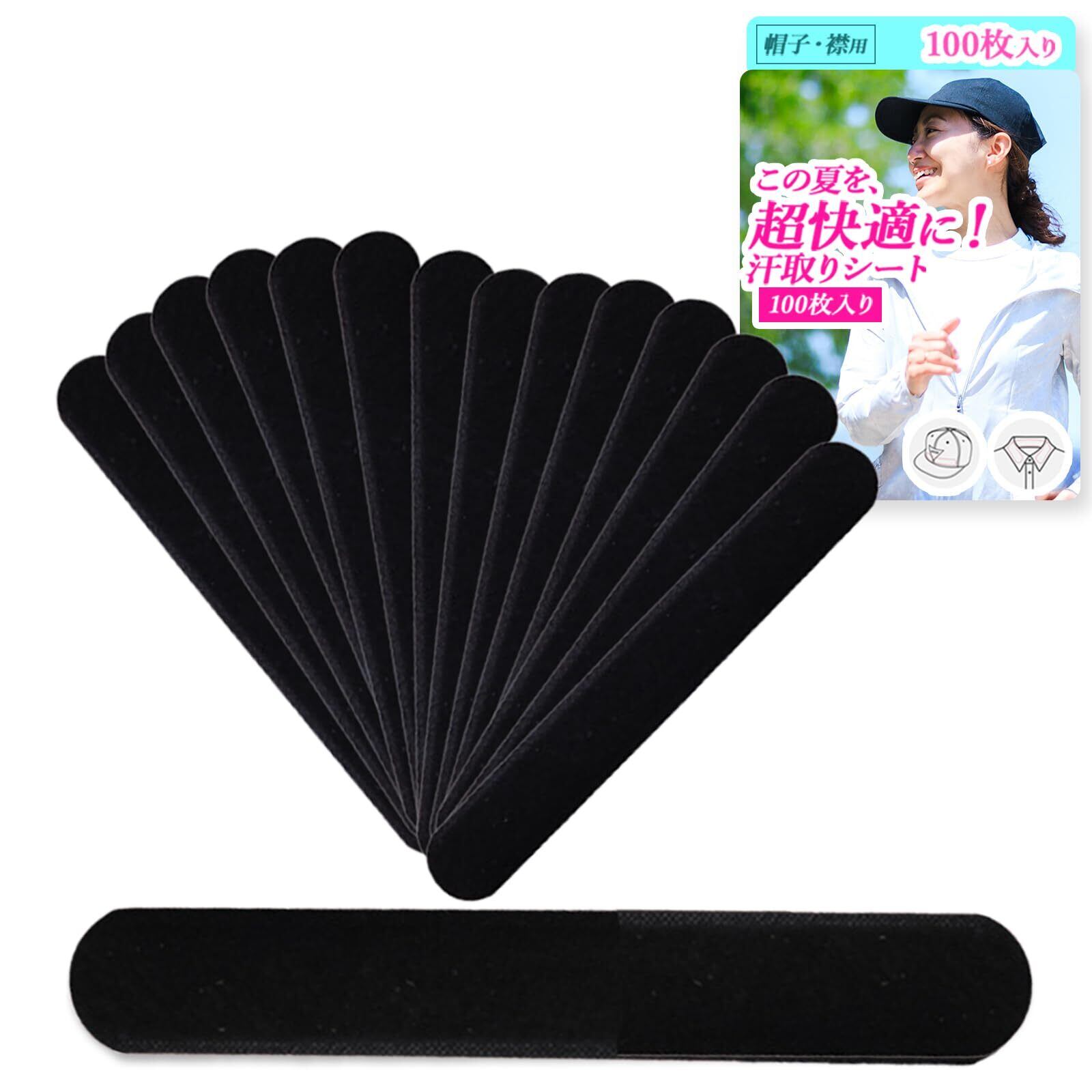 帽子 汗取りシート あせとりテープ 汗取りパッド 汗取りテープ 帽子汗止め よごれ防止テープ キャップライナー 襟汚れ防止テープ 帽子用汗取りシート セット 使い捨て 汗染み エリ・ソデ汚れ 防止 帽子 シャツ 襟 汗対策 汗止め 男女兼用 (ブラック, 100枚セット.)