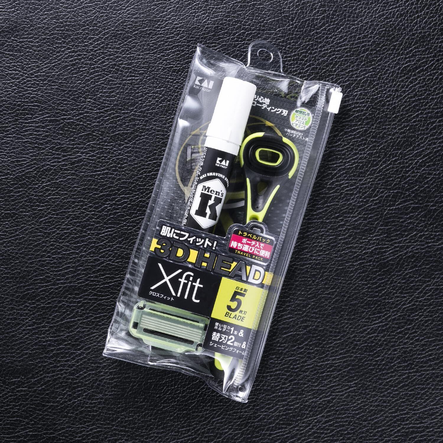貝印 Xfit カミソリ トラベルパック 替刃 2個 シェービングフォーム付 メンズ 剃刀 ひげそり T字 5枚刃 まとめ買い