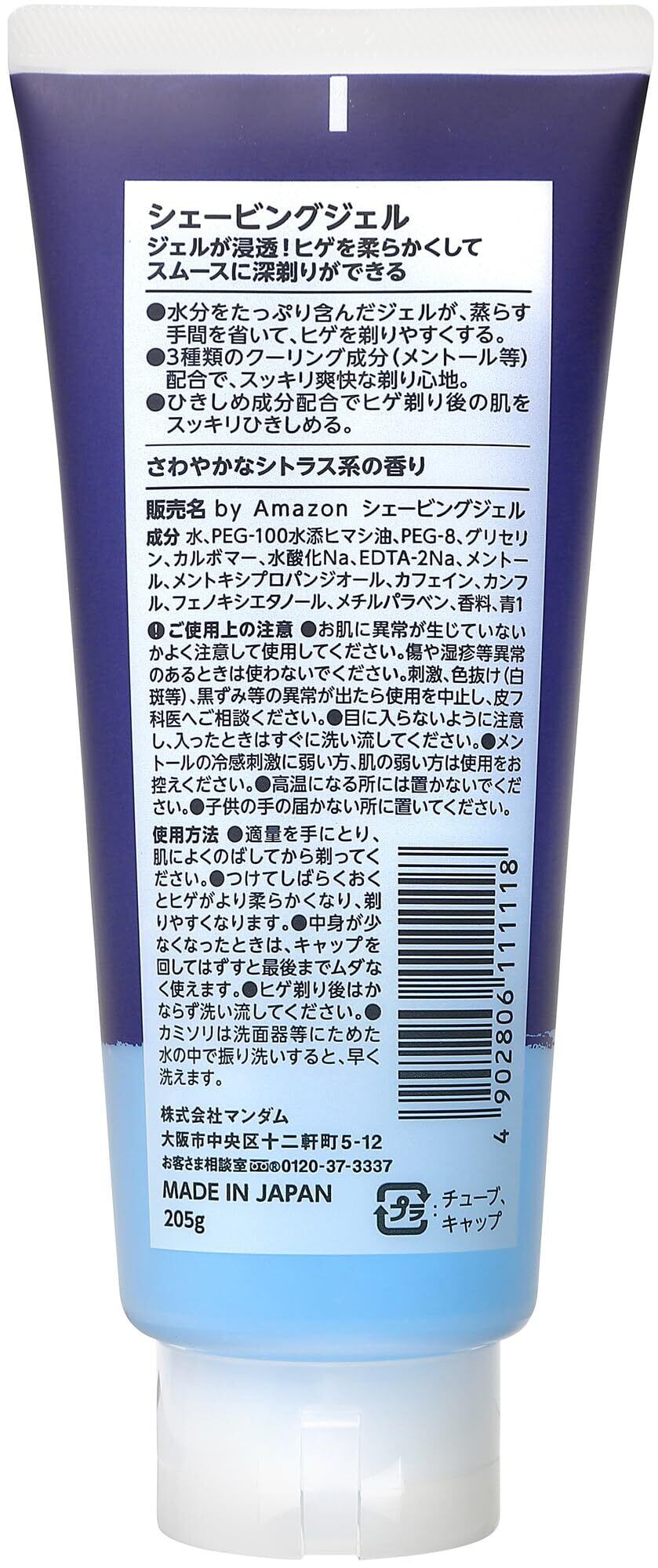 ■水分をたっぷり含んだジェルが、蒸らす手間を省いて、ヒゲを剃りやすくする。■3種類のクーリング成分(メントール等)配合で、スッキリ爽快な剃り心地。■ひきしめ成分配合でヒゲ剃り後の肌をスッキリひきしめる。―さわやかなシトラス系の香り―