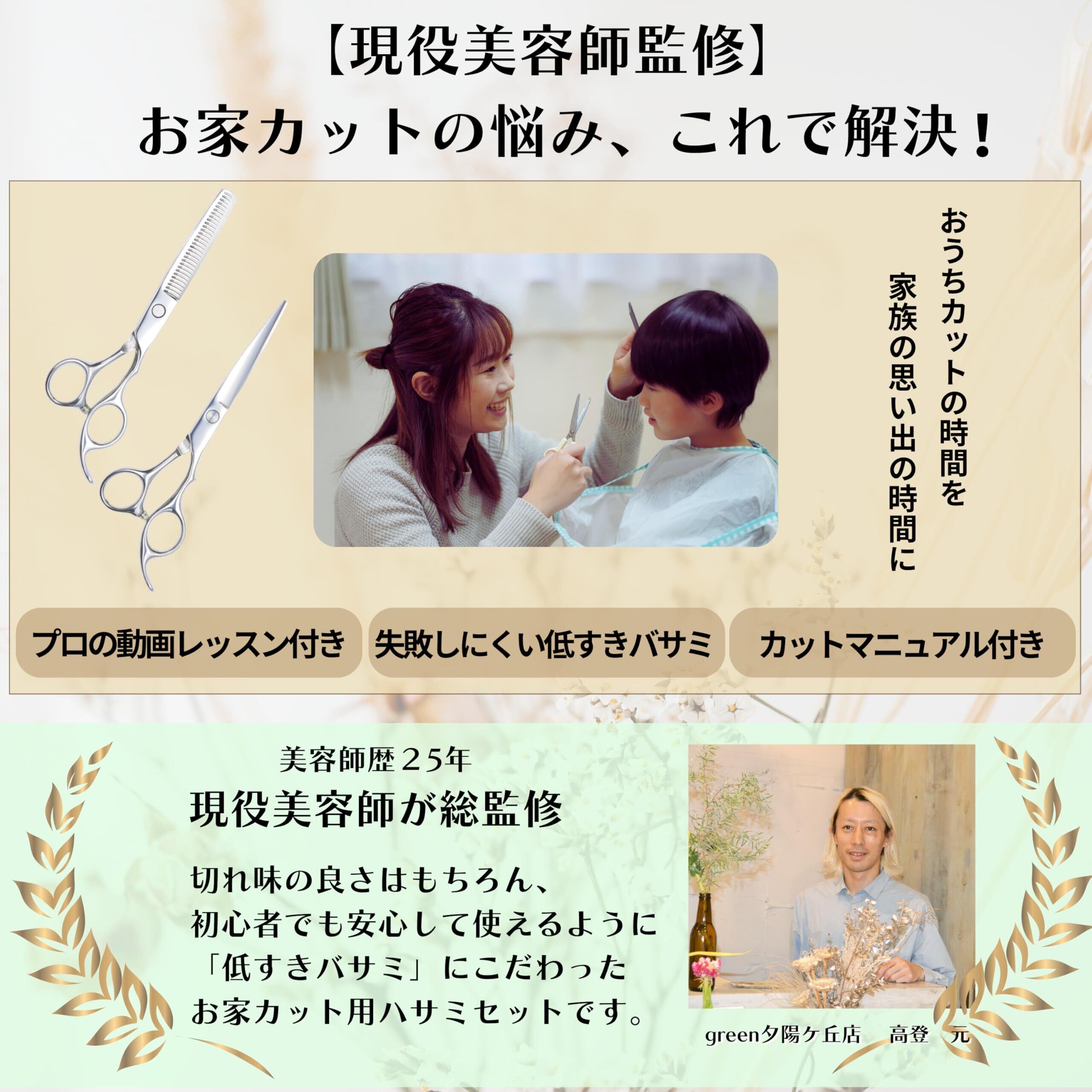 【プロ美容師監修のセルフカット用散髪セット】 美容師歴20年の現役プロが監修した家庭用カットセット。初心者やママのセルフカット・子供の前髪カットにも安心して使える内容です。