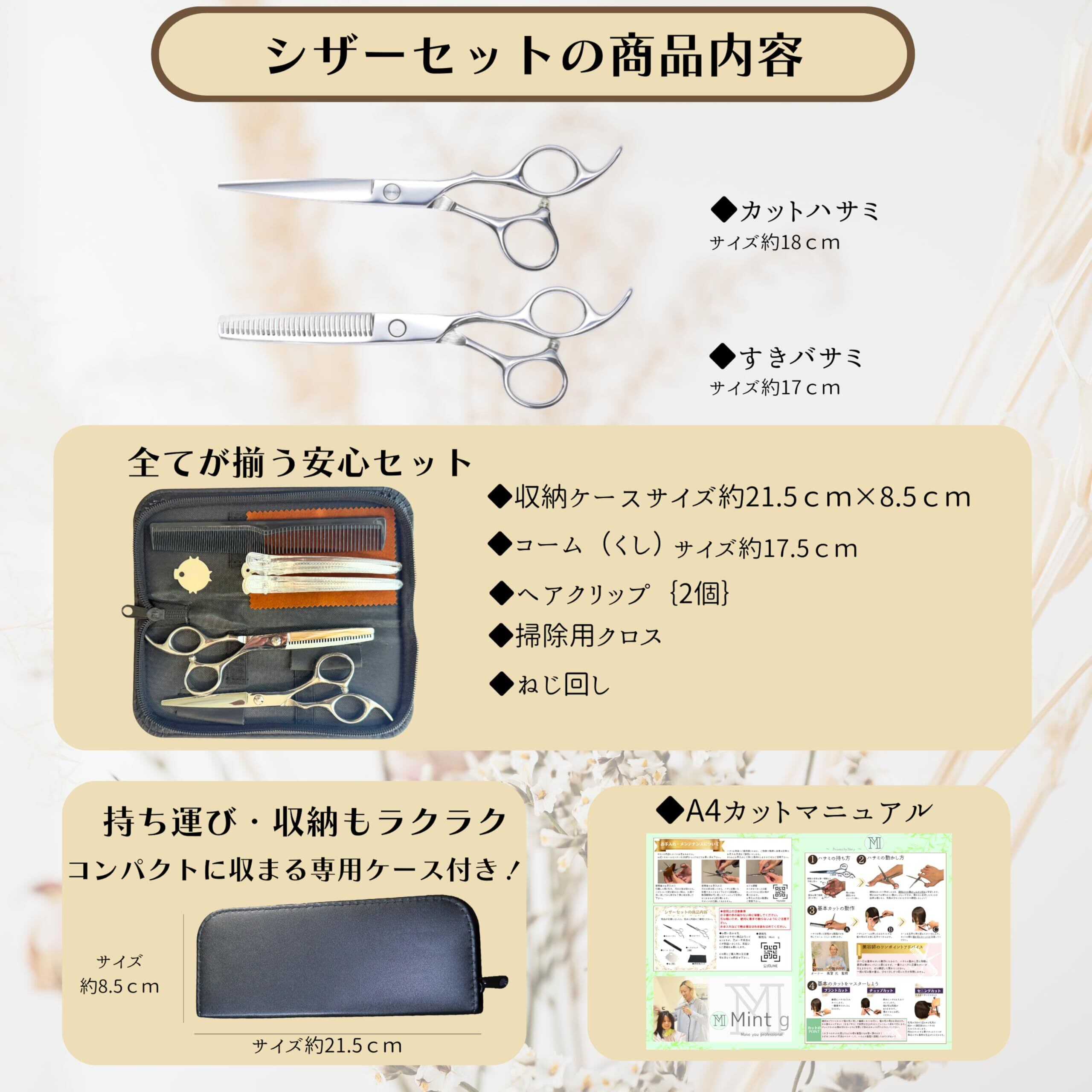 Mint g 【散髪はさみセット】 初心者でも安心セルフカット用すきバサミ&カットバサミ子供〜大人兼用プロ監修カットマニュアル付きすき率10% 収納ケース付き