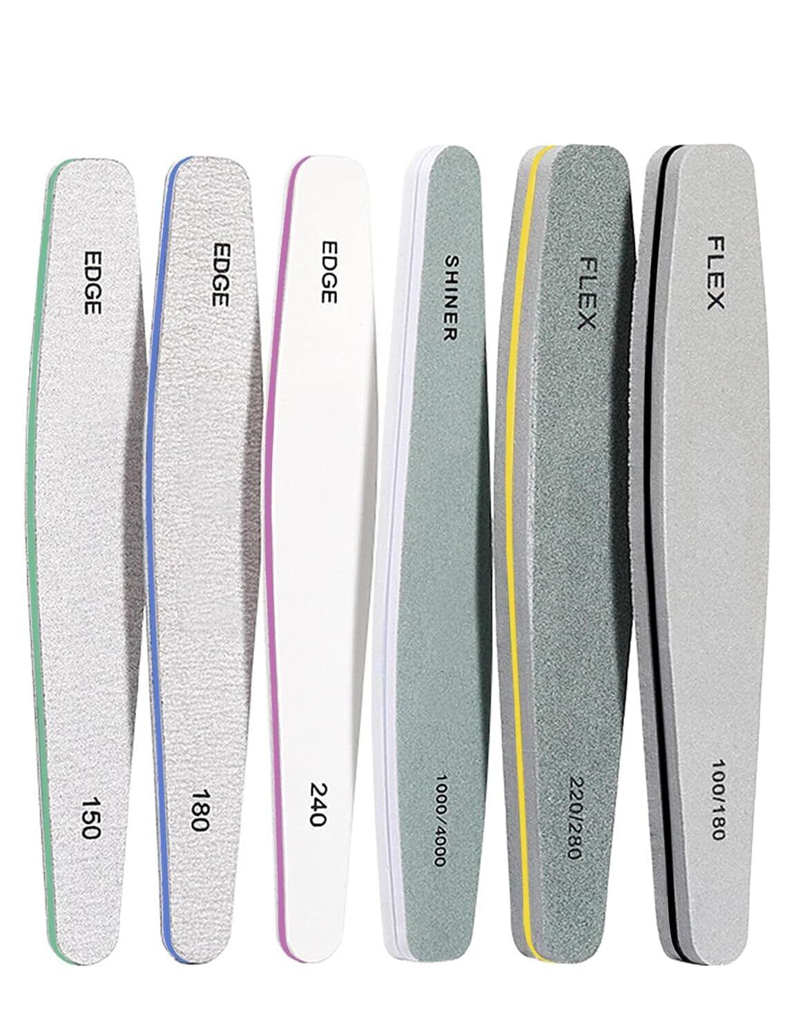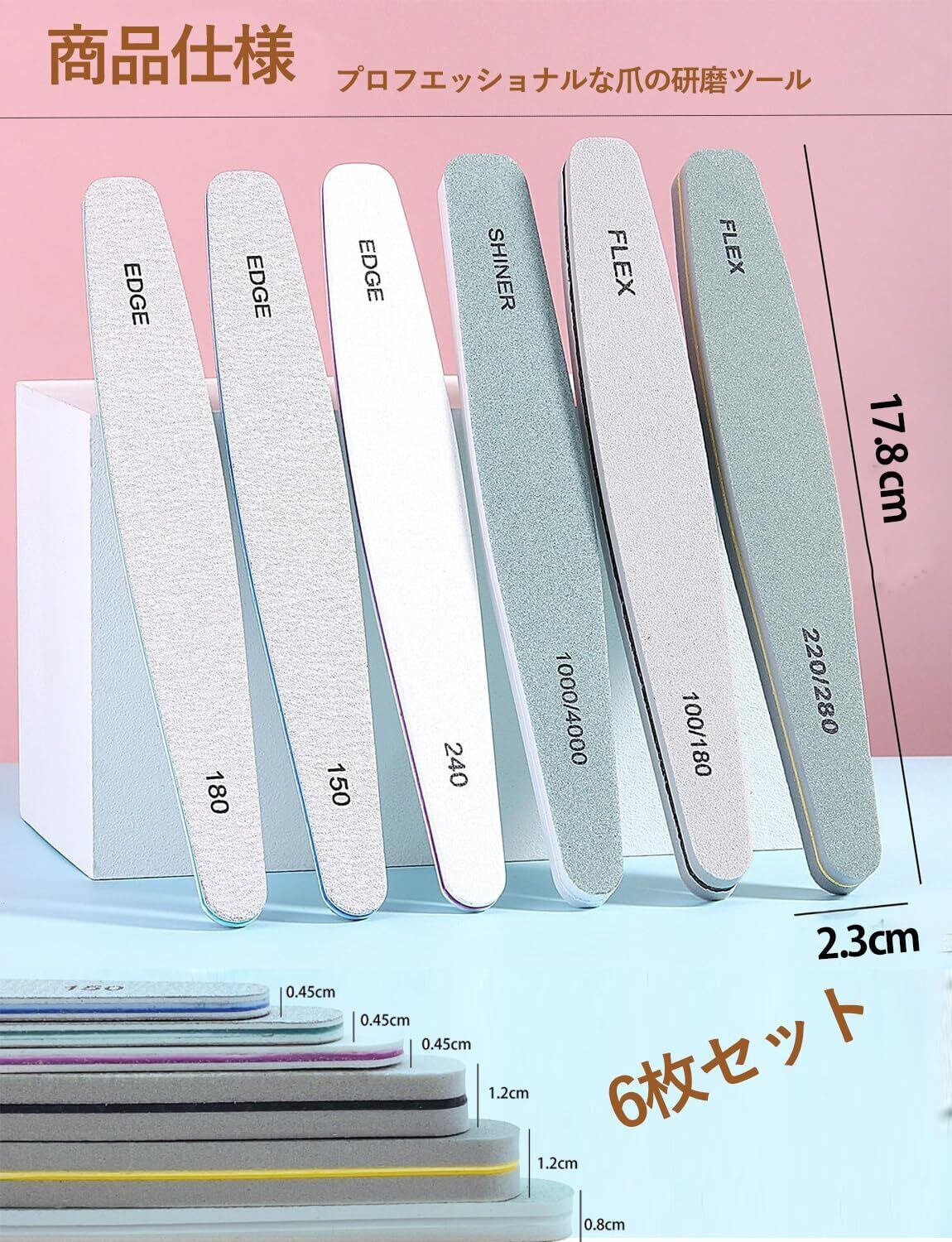 【プロのネイルファイル】:基本的なネイルファイル6本セットです。異なるファイルのG(グリッド)があります。